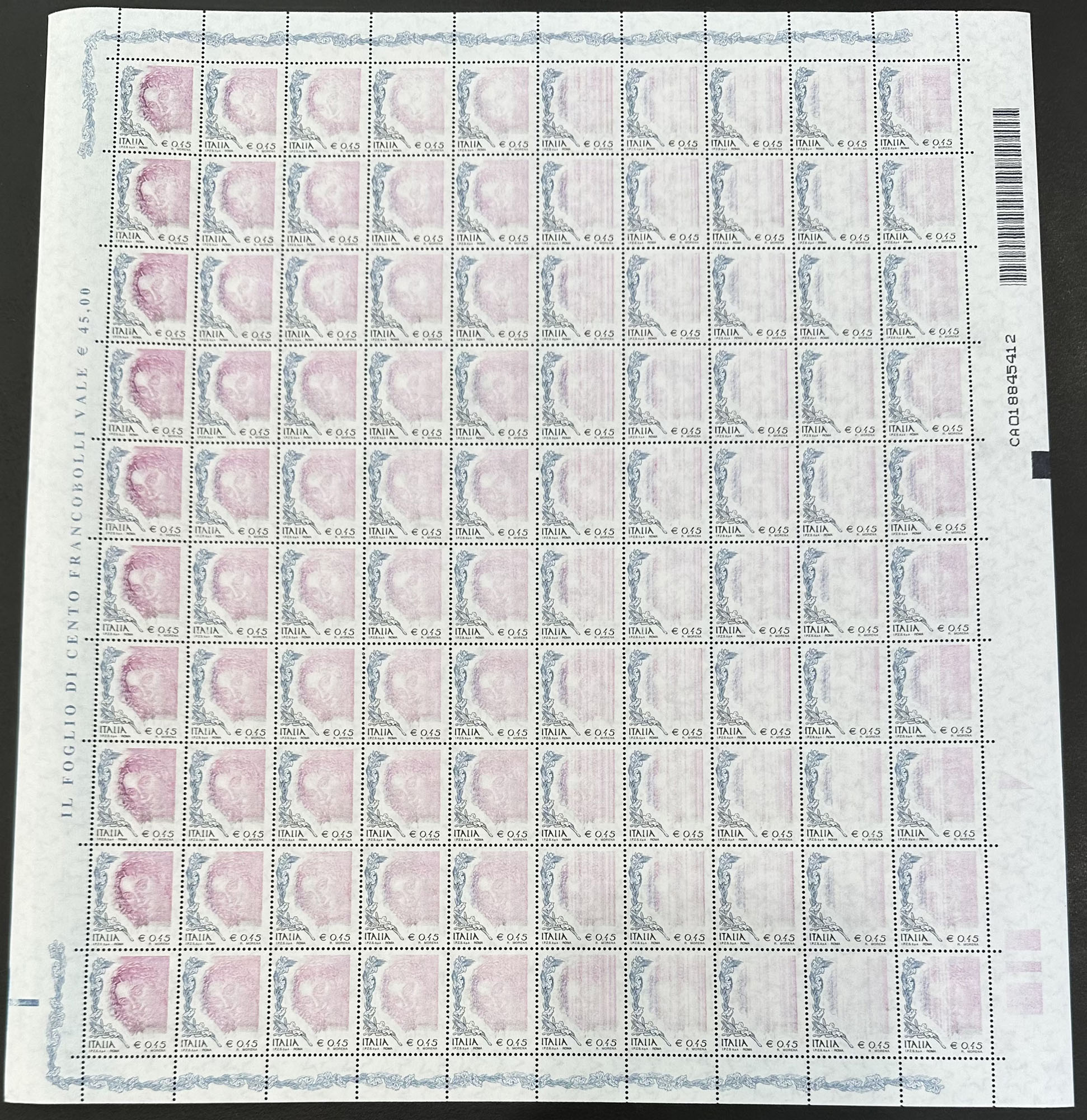 Repubblica - Donna nell'arte (2726 varietà)Donna nell'arte foglio completo di 100 es. con stampa evanescente - (2726 varietà)