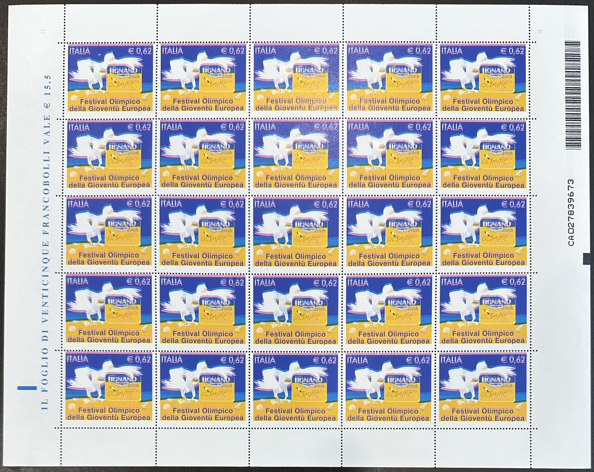 Repubblica - 0,62 Eyof (2831 varietà)Foglio completo di 25 es. del 0,62 Eyof senza la stampa del nero e con stampa smossa - (2831 varietà)