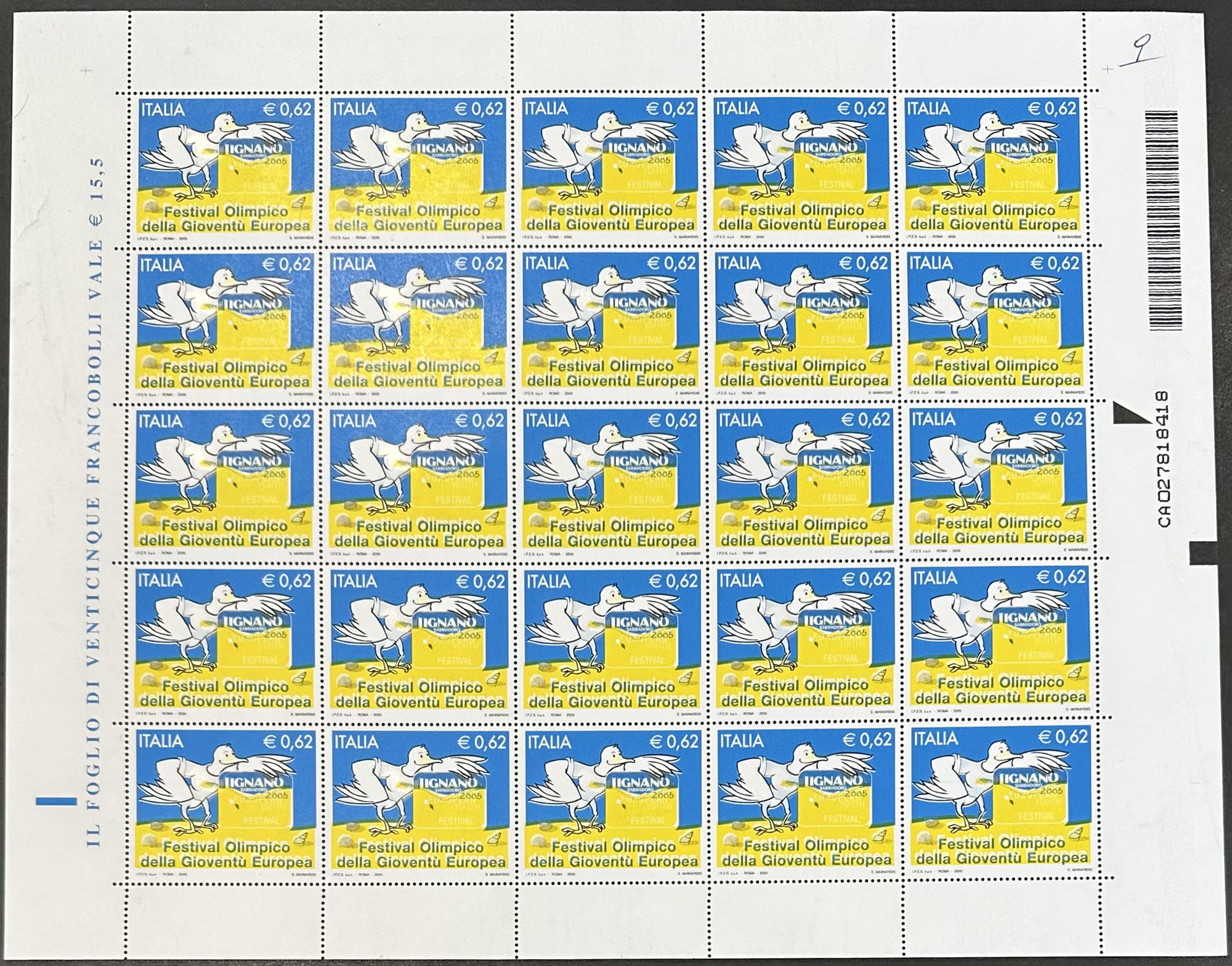 Repubblica - 0,62 Eyof (2831b)Foglio completo di 25 es. del 0,62 Eyof senza la stampa del colore rosso - RARO - (2831b)