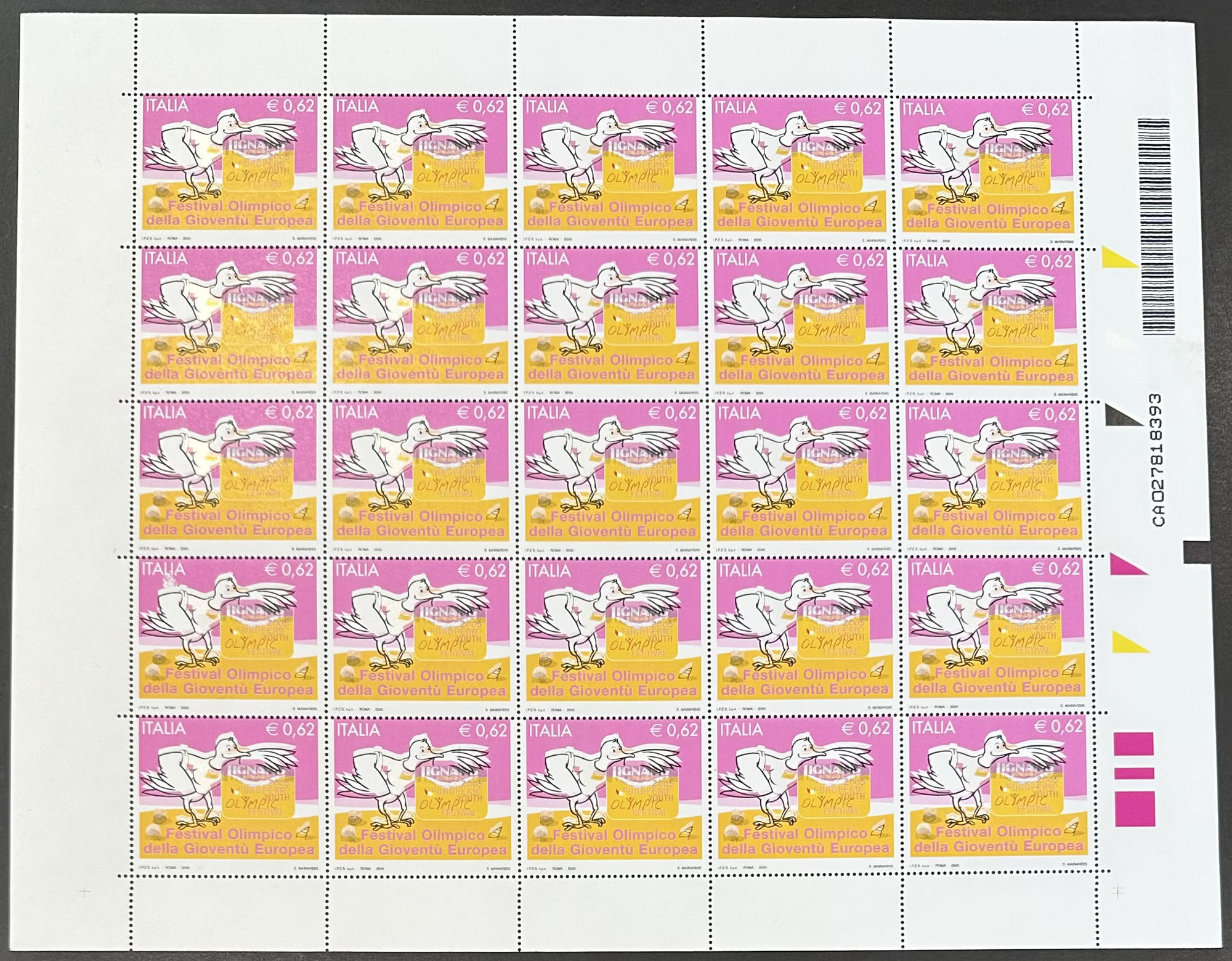 Repubblica - 0,62 Eyof (2831c)Foglio completo di 25 es. del 0,62 Eyof senza la stampa del colore azzurro - RARO - (2831c)
