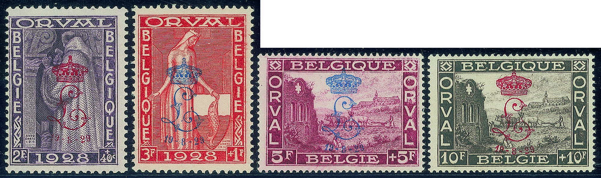 BELGIO - 1929 - Abbazia di Orval - Posa della prima pietra della basilica ricostruita (272A/K)Serie di nove valori - gomma integra - cert. Willy Balasse