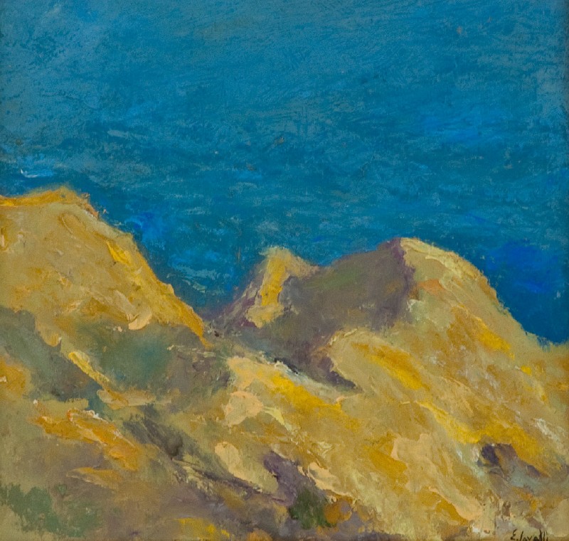 Emanuele Cavalli (Lucera (Fg) 1904 - Firenze 1981) SCOGLIERA Olio su tavola, cm. 28x28 Firmato in basso a destra. Sul verso: firma.