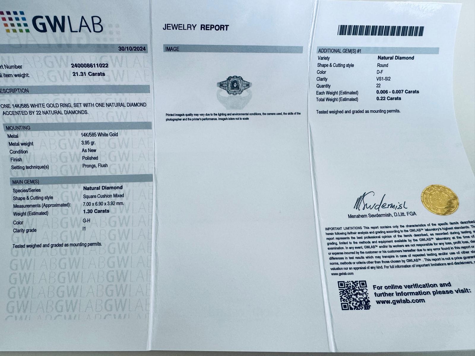 ANELLO IN ORO 14K VINTAGE CON DIAMANTE 1,30 CT COLORE G-H PUREZZA I1 + BRILLANTI LATERALI PER 0,20 CT D-F/VS-SI - TAGLIA 7 -RNG30208