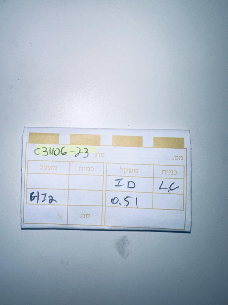 DIAMANTE NATURAL POLISHED 0,51 CARATI COLORE G - PUREZZA I2 - TAGLIO BRILLANTE - CERTIFICATO GEMMOLOGICO MAROZ DIAMONDS LTD MEMBRO ISRAEL DIAMOND EXCHANGE - NUMERO INCISO AL LASER NELLA CORONA - C31106-23-LC