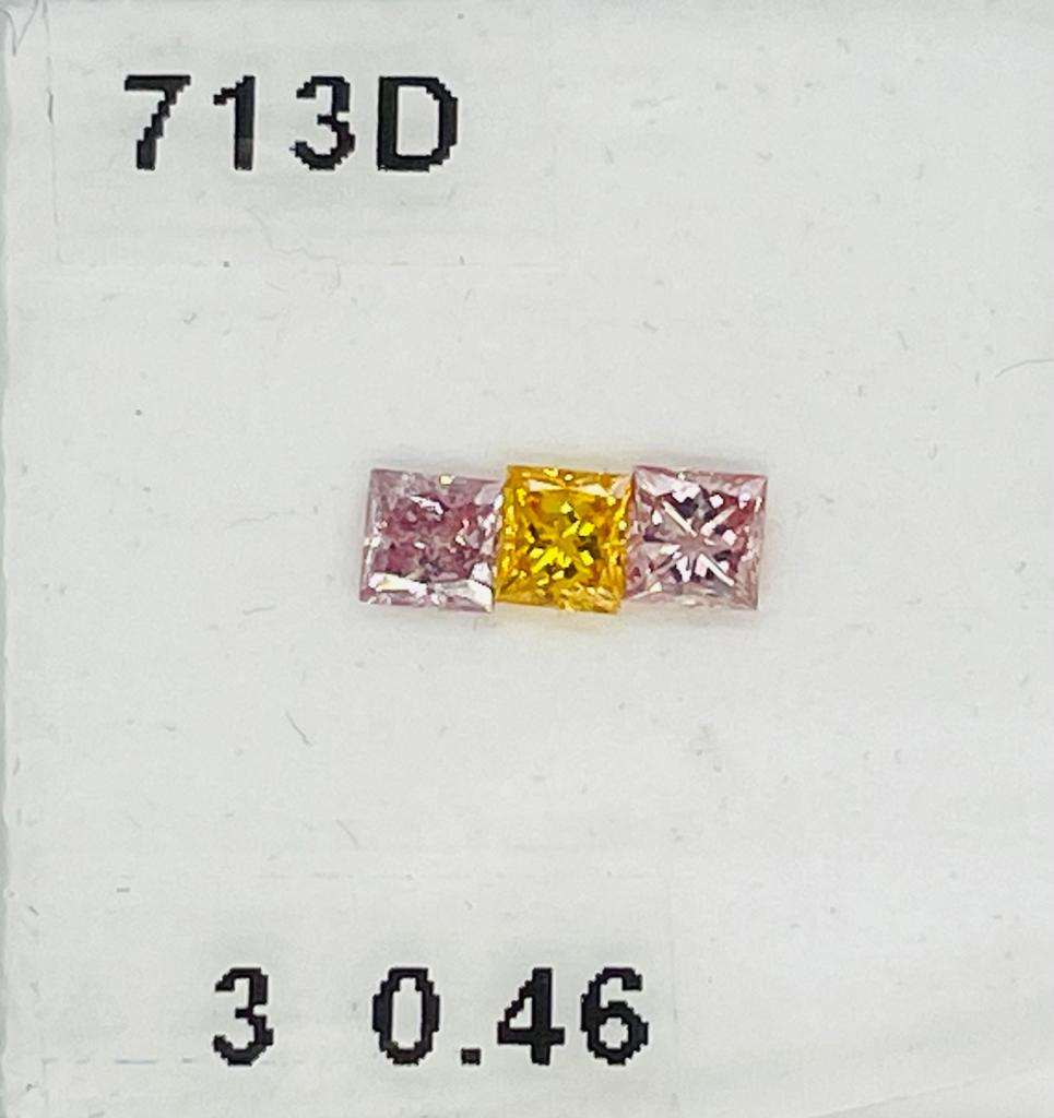 3 DIAMANTI NATURAL POLISHED 0,46 CARATI COLORE FANCY INTENSO ROSA – FANCY GIALLO VIVIDO - PUREZZA SI2 - TAGLIO PRINCESS - CERTIFICATO GEMMOLOGICO MAROZ DIAMONDS LTD MEMBRO ISRAEL DIAMOND EXCHANGE - HR20901-13