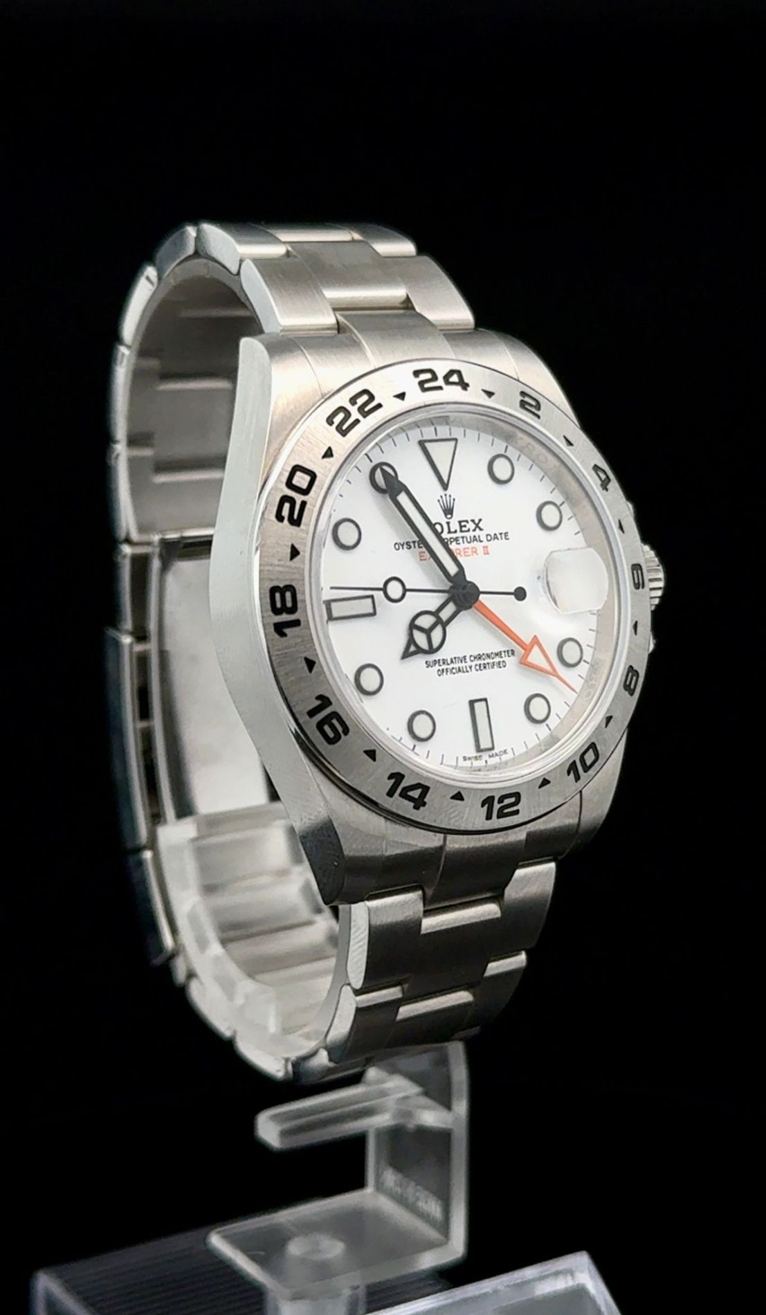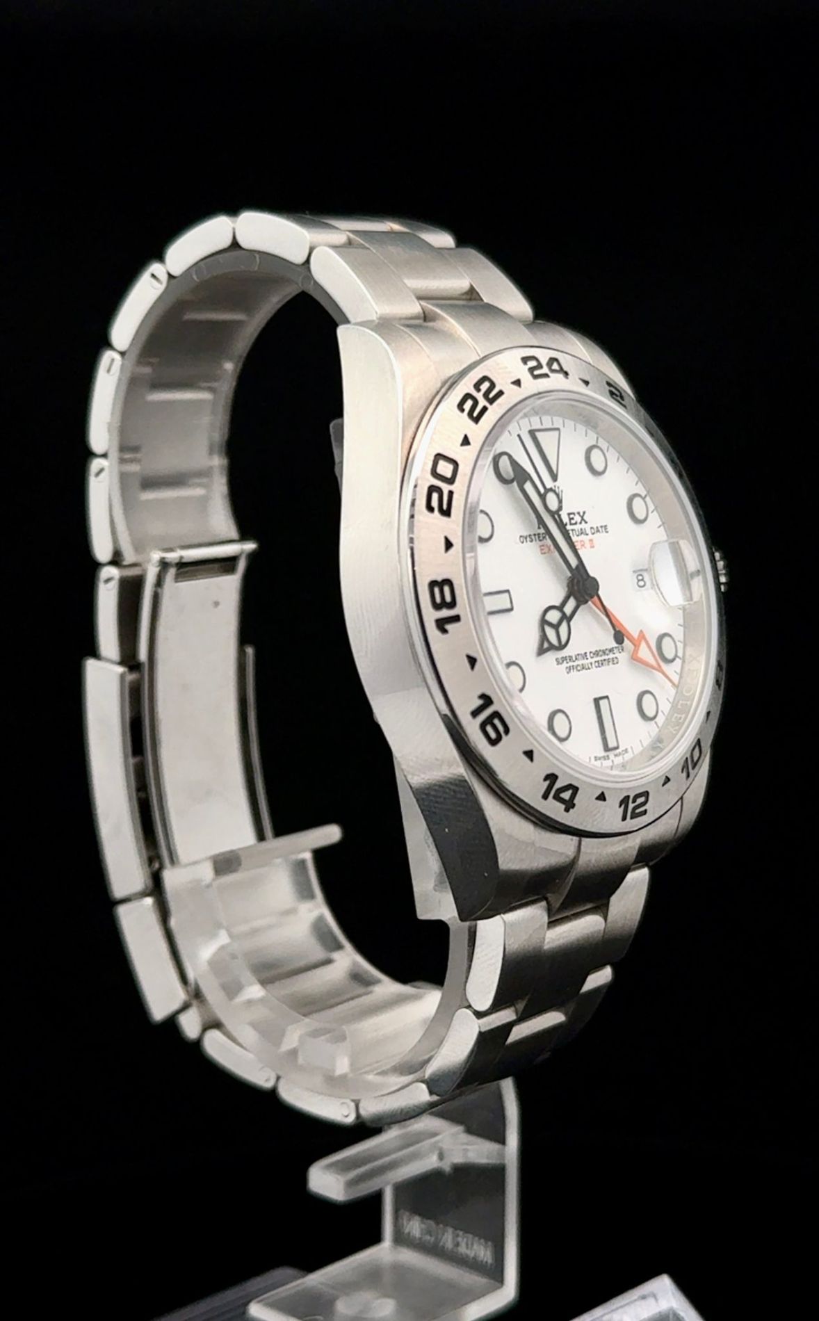 Marca Rolex Modello (Orologio) Explorer II Numero di referenza 216570 Carica Automatico Materiale della cassa Acciaio Materiale cinturino Acciaio Anno di produzione 2021 Condizione Usato (Ottimo) L'articolo presenta segni di usura lievi, come ad esempio graffi leggeri, ma non percepibili al tatto. Corredo documenti originali, no box Calibro Carica Automatico Cassa Materiale della cassa Acciaio Diametro 42 mm Impermeabile 10 ATM Materiale lunetta Acciaio Vetro Vetro zaffiro Quadrante Bianco Numeri sul quadrante Senza numeri Cinturino Materiale cinturino Acciaio Colore cinturino Acciaio Chiusura Déployante Materiale chiusura Acciaio