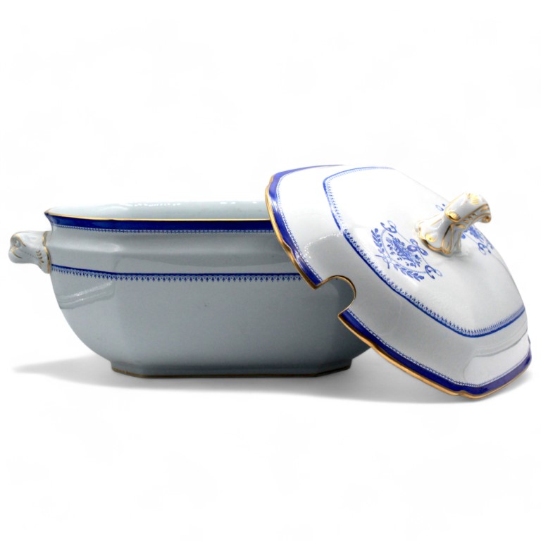 Zuppiera in terraglia bianco blu