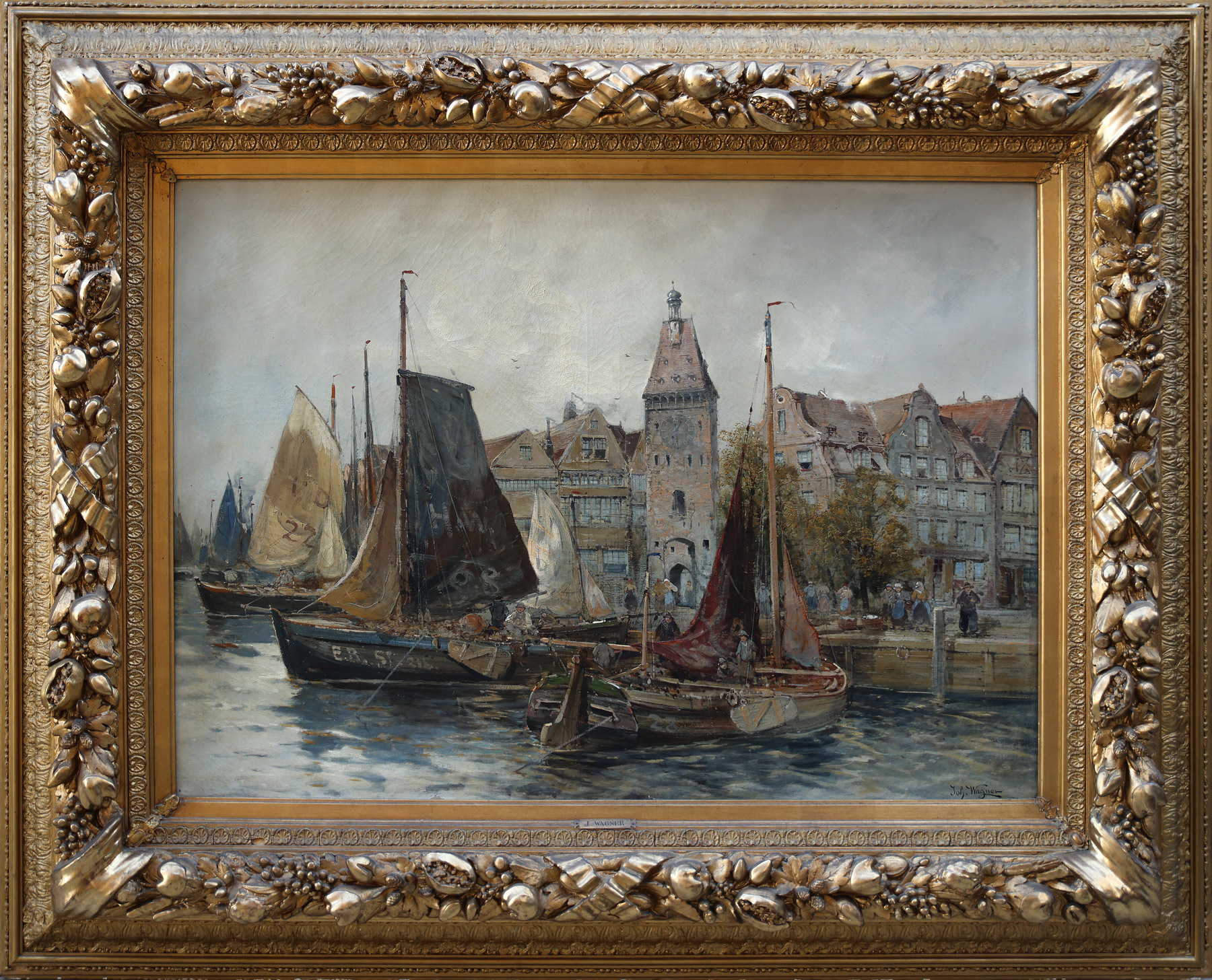 Georg Fischhof firmato J. Wagner (Austria 1859 - 1914) Porto del Nord Europa...
