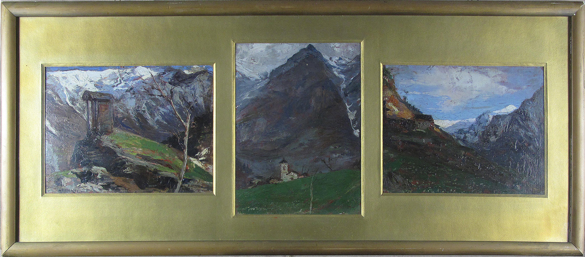 Mario Ornati Pavia (1887 - Milano 1955) Paesaggi montani Olio su Cartoncino...