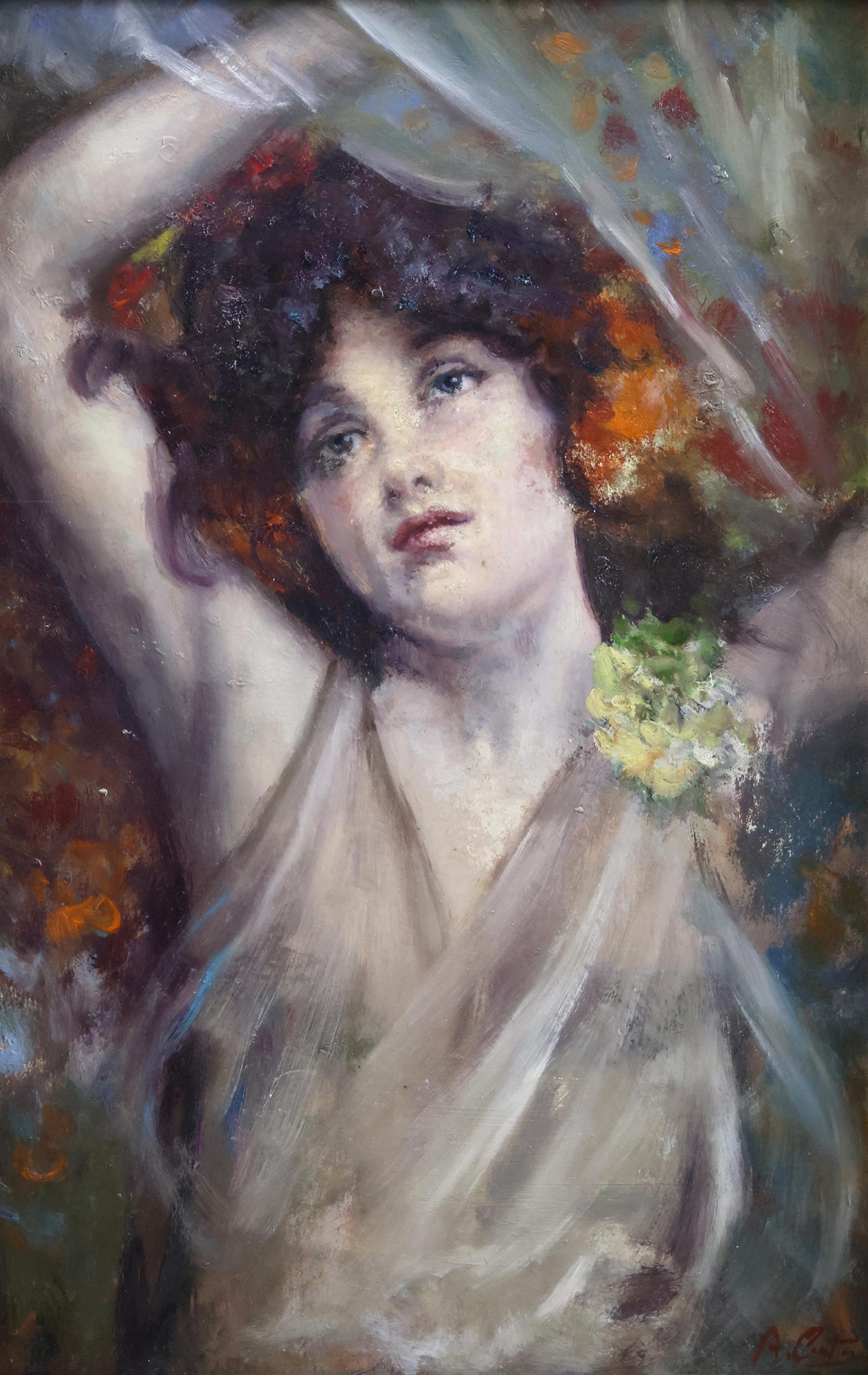 Firma illeggibile (XIX-XX secolo) Ritratto di giovane donna Olio su tavola...