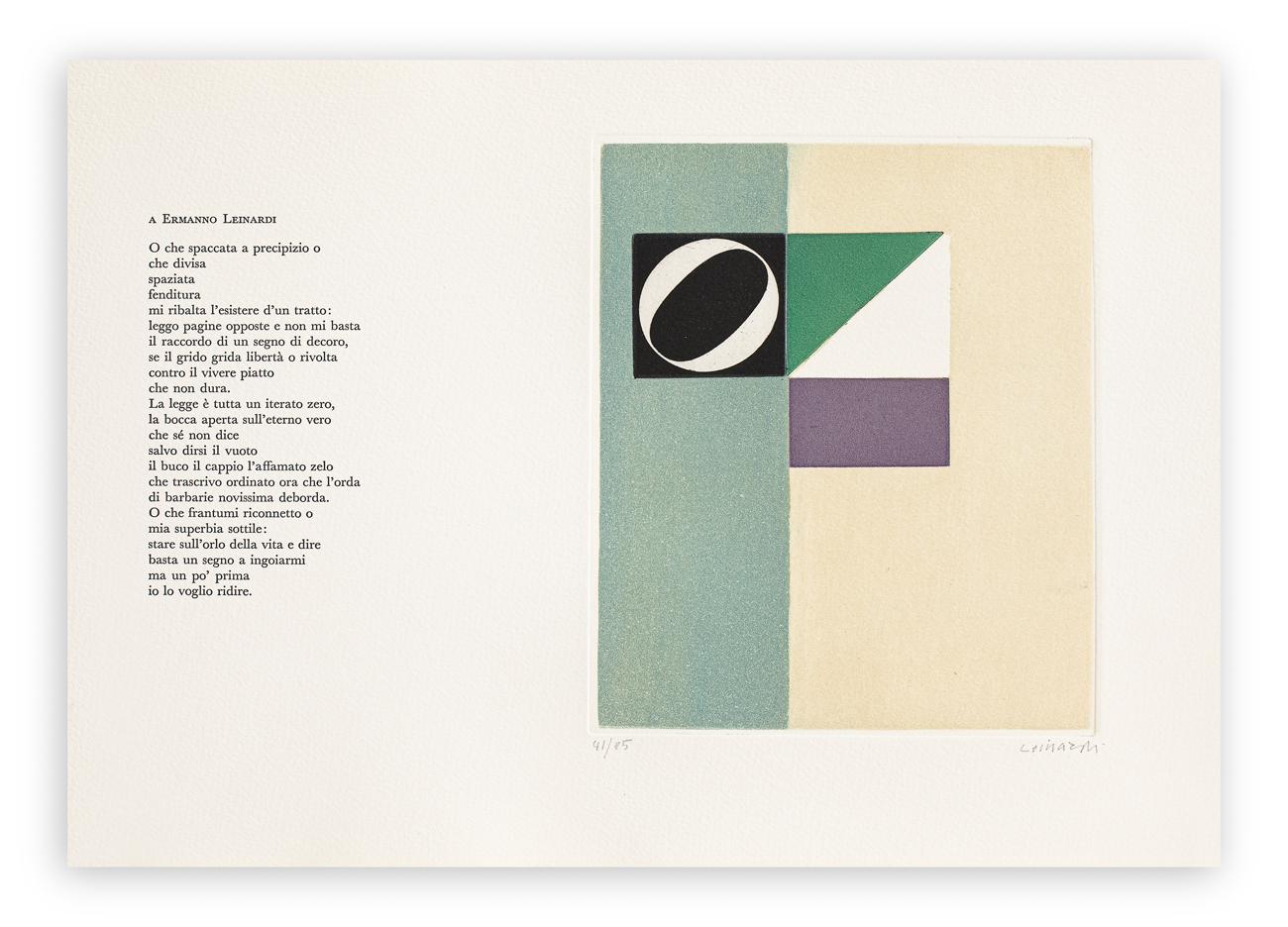Edizione complessiva di 85 copie in numeri arabi + L copie in numeri romani, tutte realizzate su carta BFK Rives