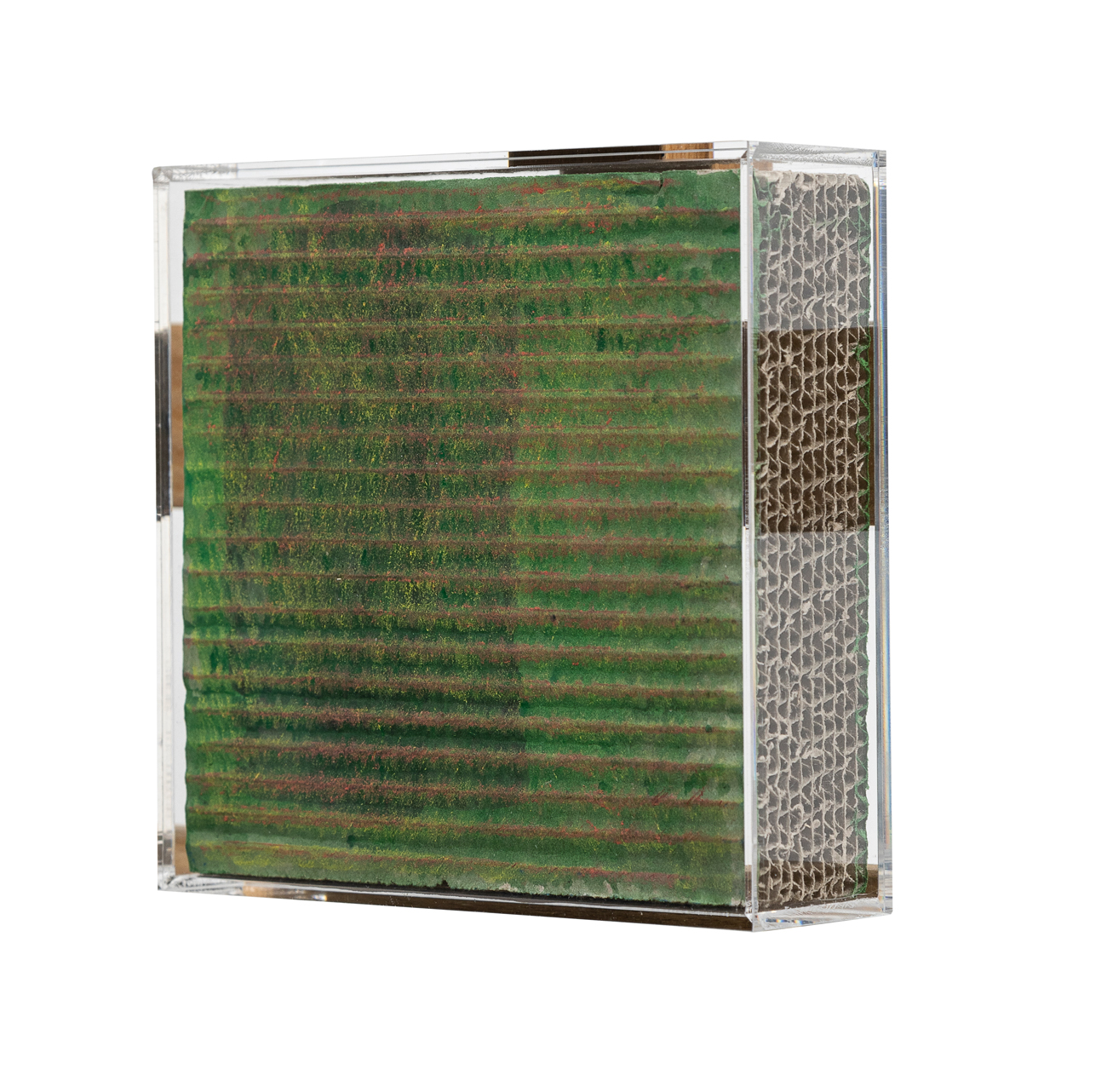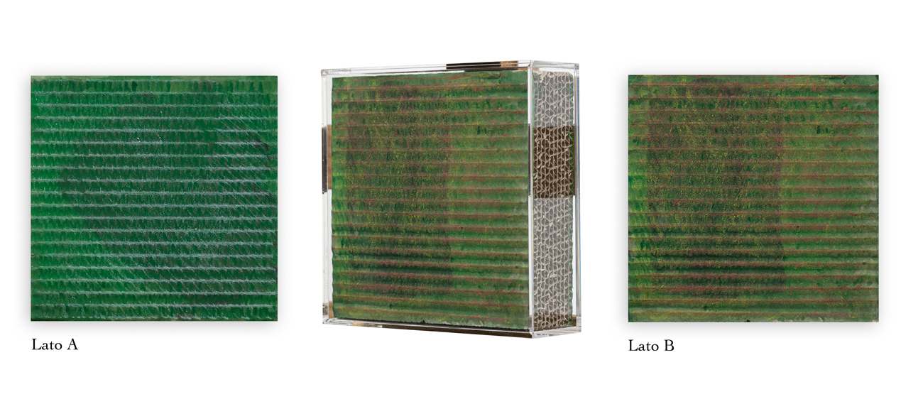 Opera entro teca di plexiglass, dipinta sia sul fronte che sul retro