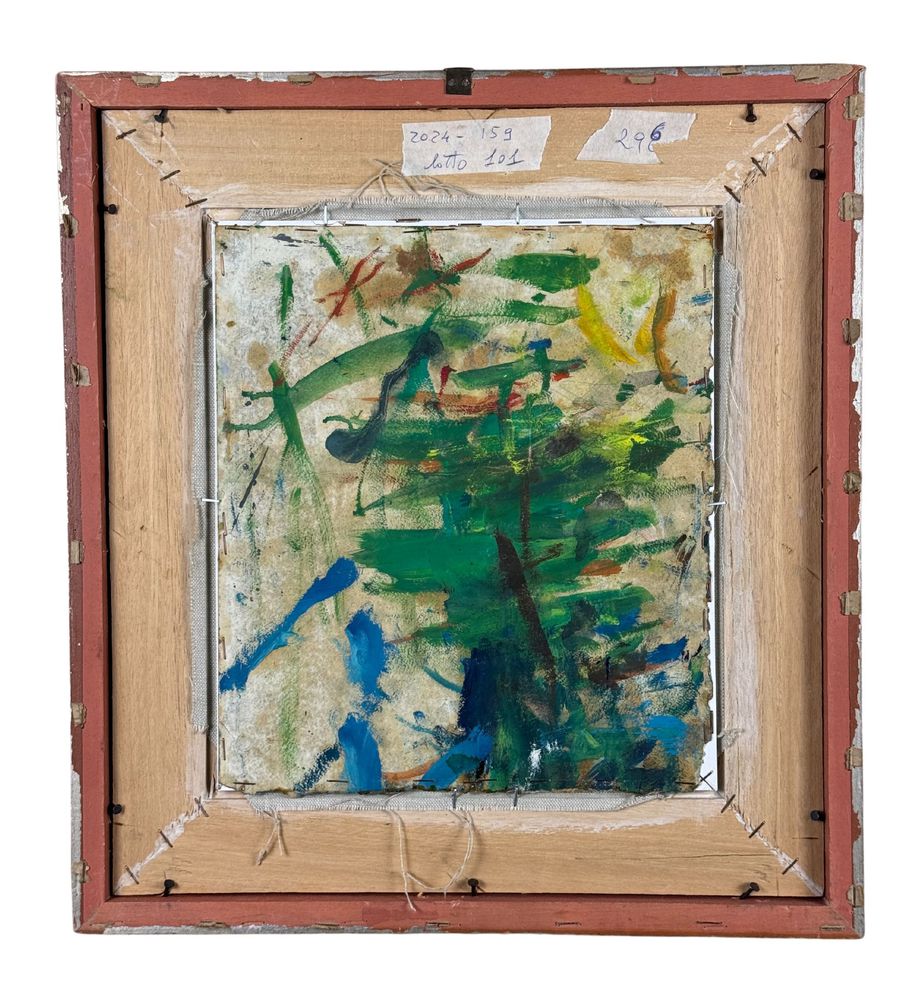 Dipinto olio su tela, periodo XX secolo scuola Italiana, raffigurante Figure astratte. Dimensioni compreso cornice: 38,5x42 cm. Dimensioni interno cornice: 24x28 cm. Da artista anonimo. Opera in buone condizioni.