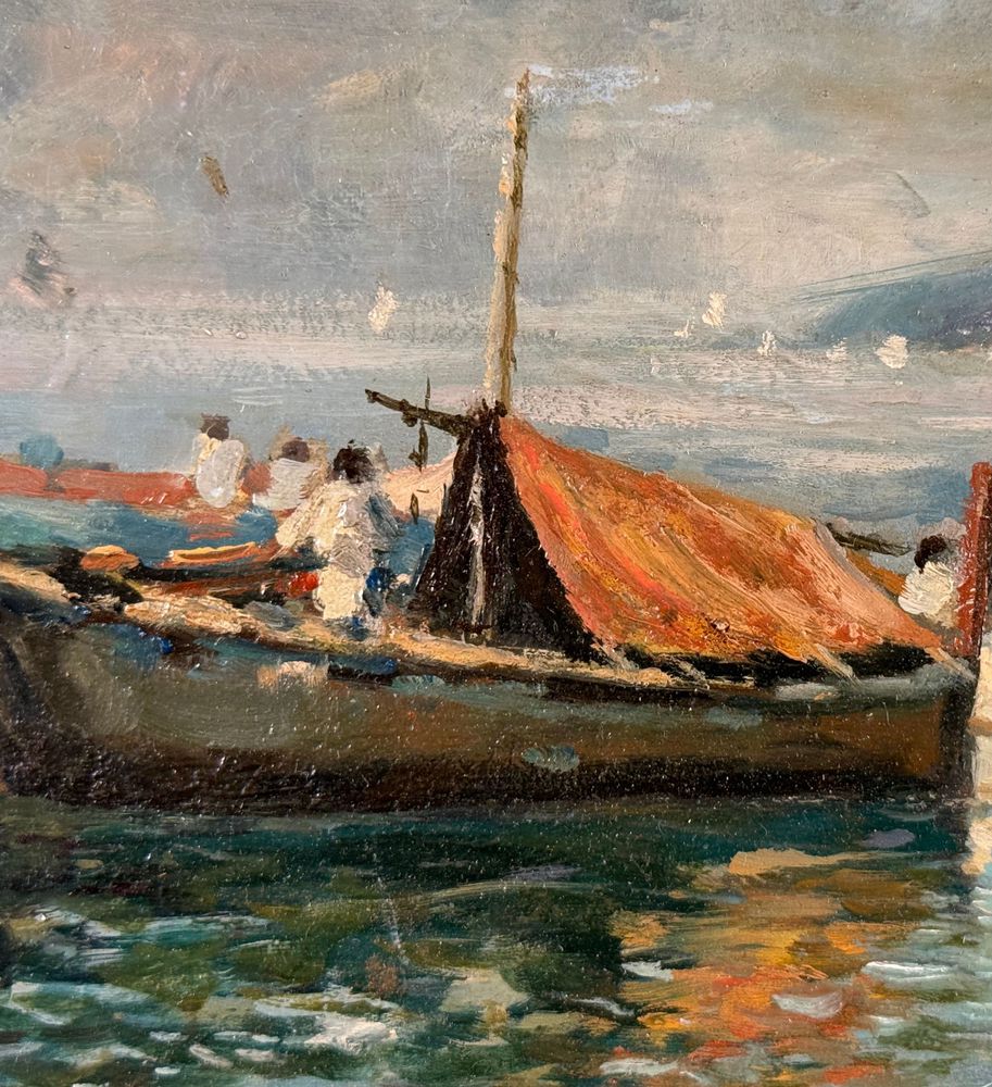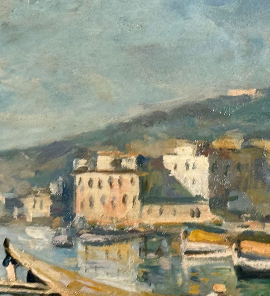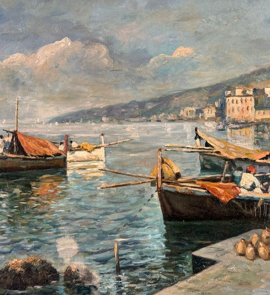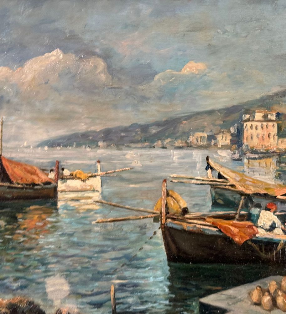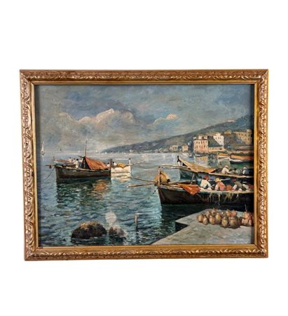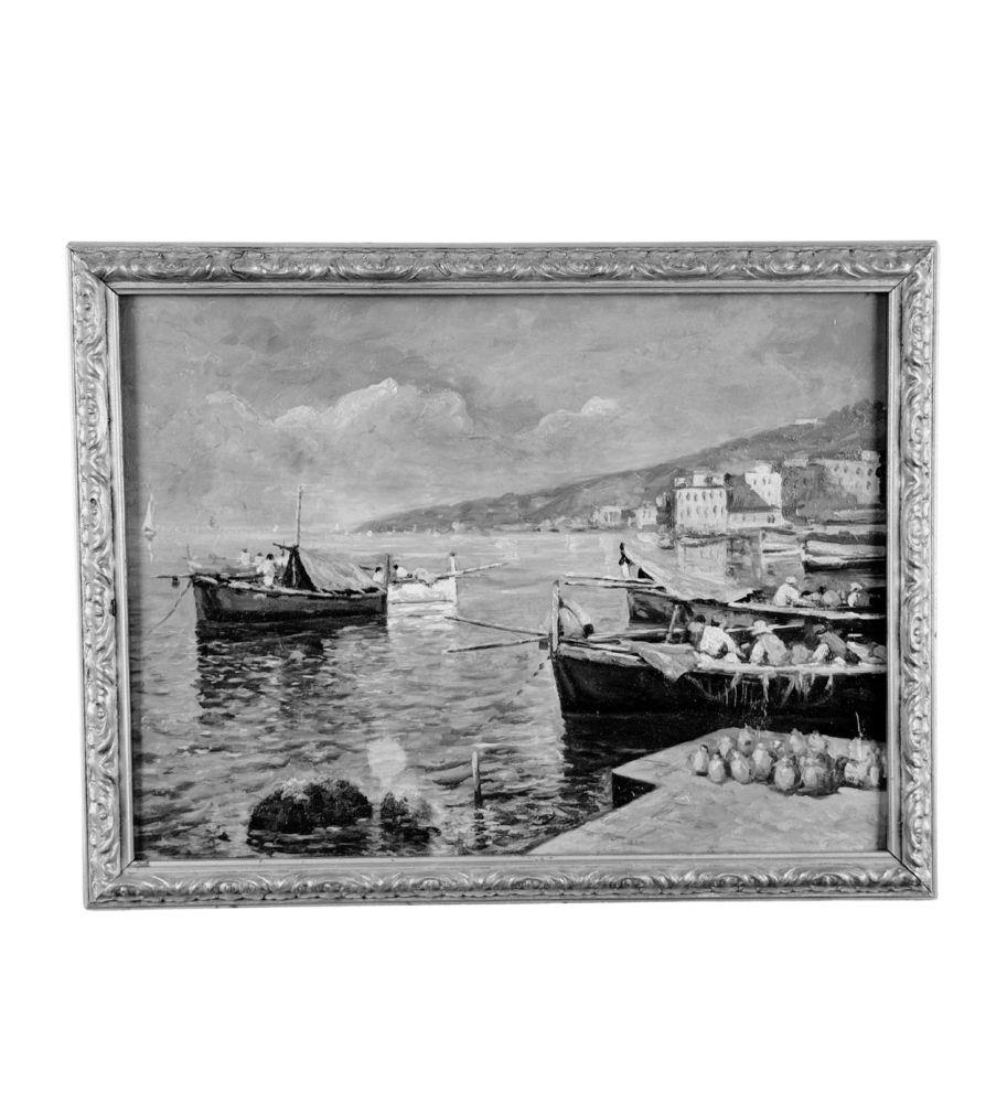 Dipinto olio su pannello, periodo XX secolo scuola Italiana, raffigurante Marina napoletana. Dimensioni compreso cornice: 44x34 cm. Dimensioni interno cornice: 40x30 cm. Da artista anonimo. Opera in buone condizioni.