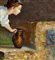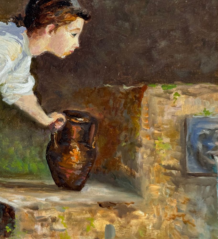Dipinto olio su pannello, periodo XX secolo scuola Italiana, raffigurante Giovane alla fontana. Dimensioni: 29x21 cm. Da artista anonimo. Opera in buone condizioni.