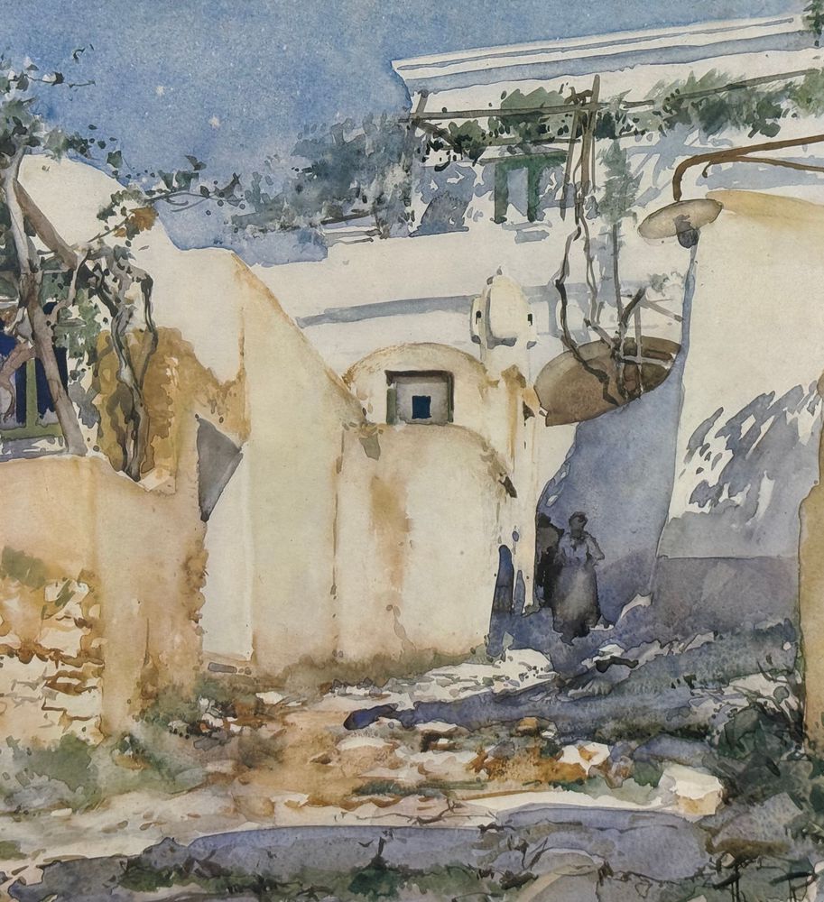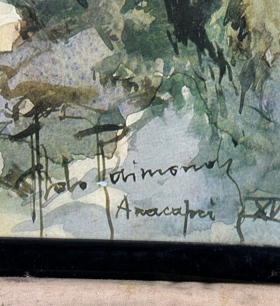Acquerello su carta, periodo XX secolo scuola Italiana, raffigurante Scorcio di Anacapri. Dimensioni: 56x40 cm. Reca firma in basso a destra da artista non identificato. Opera in buone condizioni.