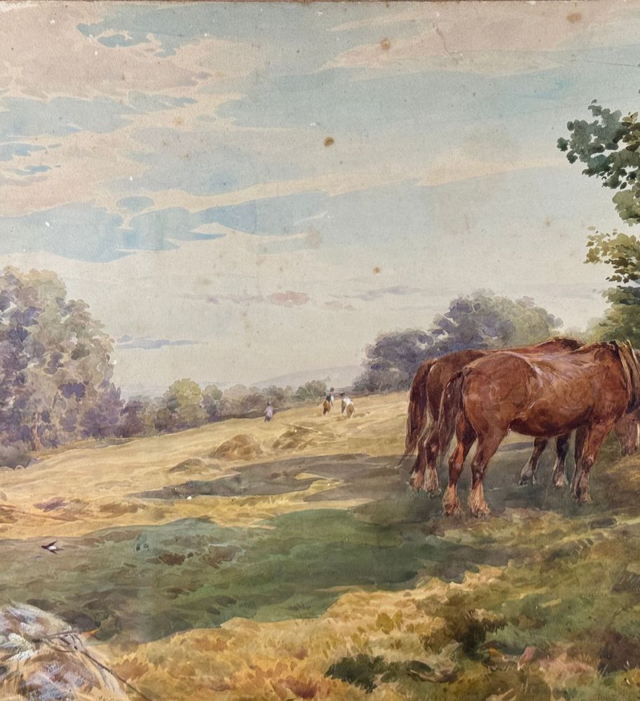Acquerello su carta, periodo XIX/XX secolo secolo scuola Europea, raffigurante Paesaggio con personaggi e cavalli (Estate). Dimensioni compreso cornice: 84x69 cm. Dimensioni interno cornice: 52x37 cm. Reca firma in basso a sdestar da Francis Appleton. Opera in buone condizioni con certificato di autenticità sul retro lasciato dall'Istituto Nazionale d'Arte.