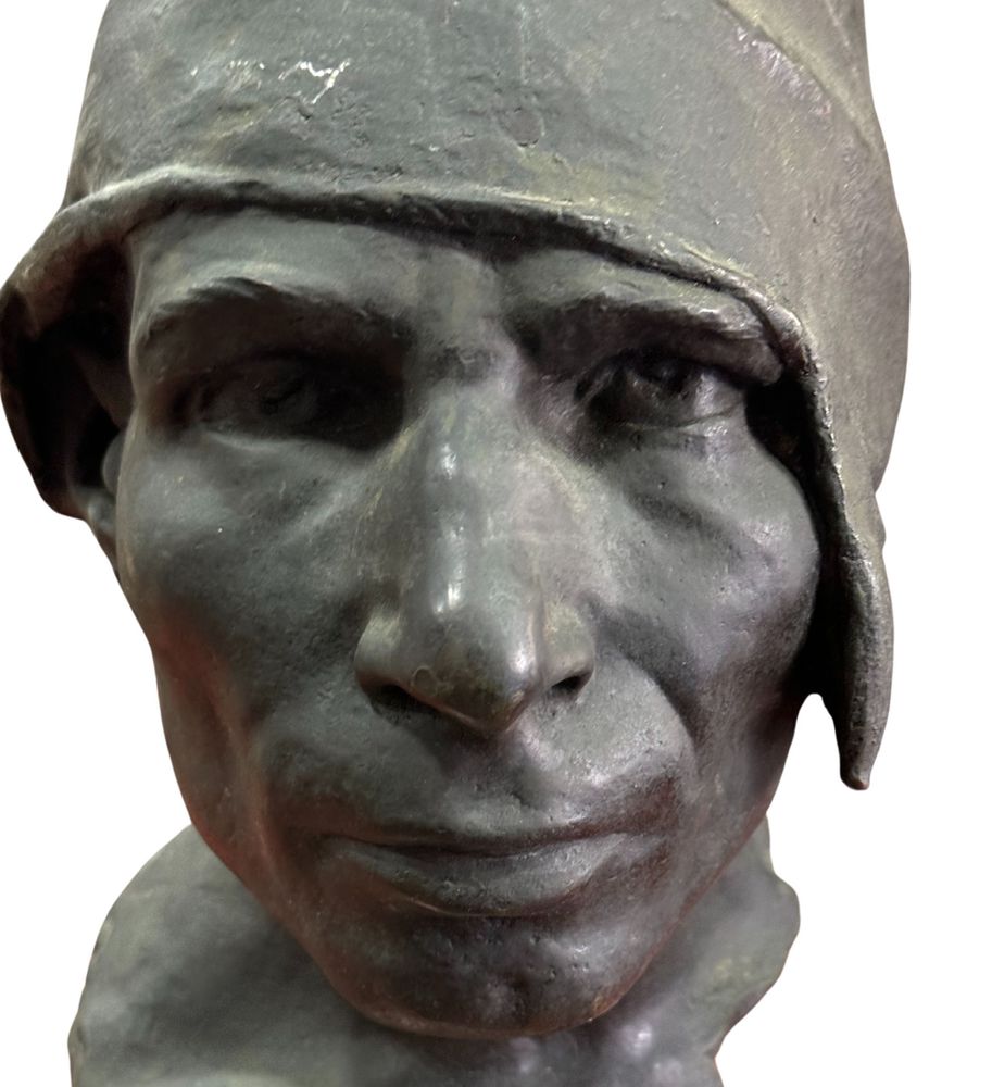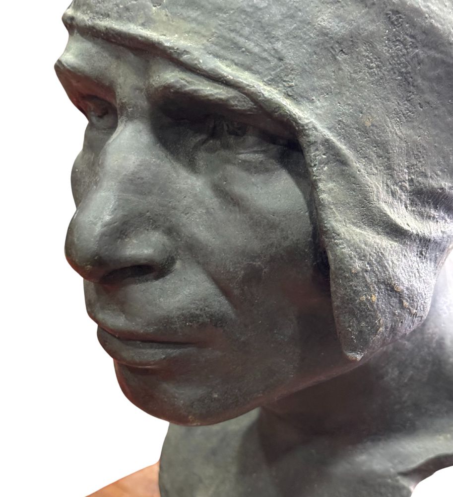 Scultura in bronzo a cera persa, periodo XIX/XX secolo, raffigurante Personaggio maschile. Dimensioni: h44x29x21 cm. Scultura in buone condizioni.