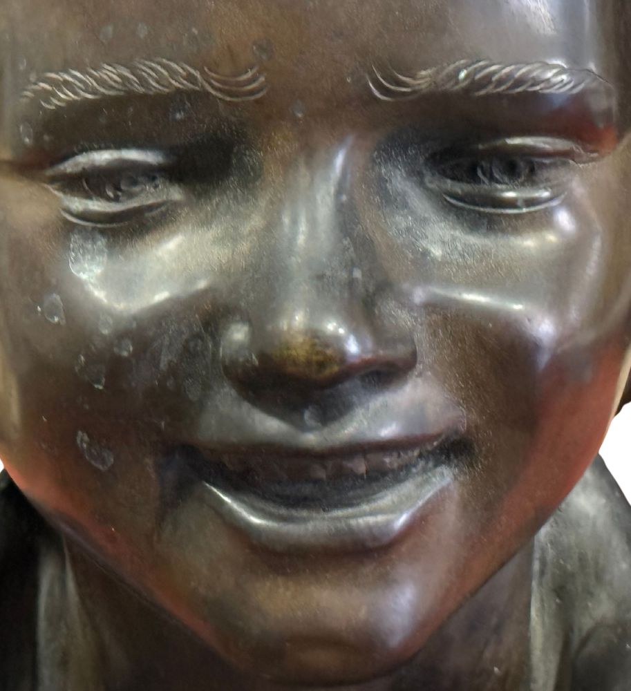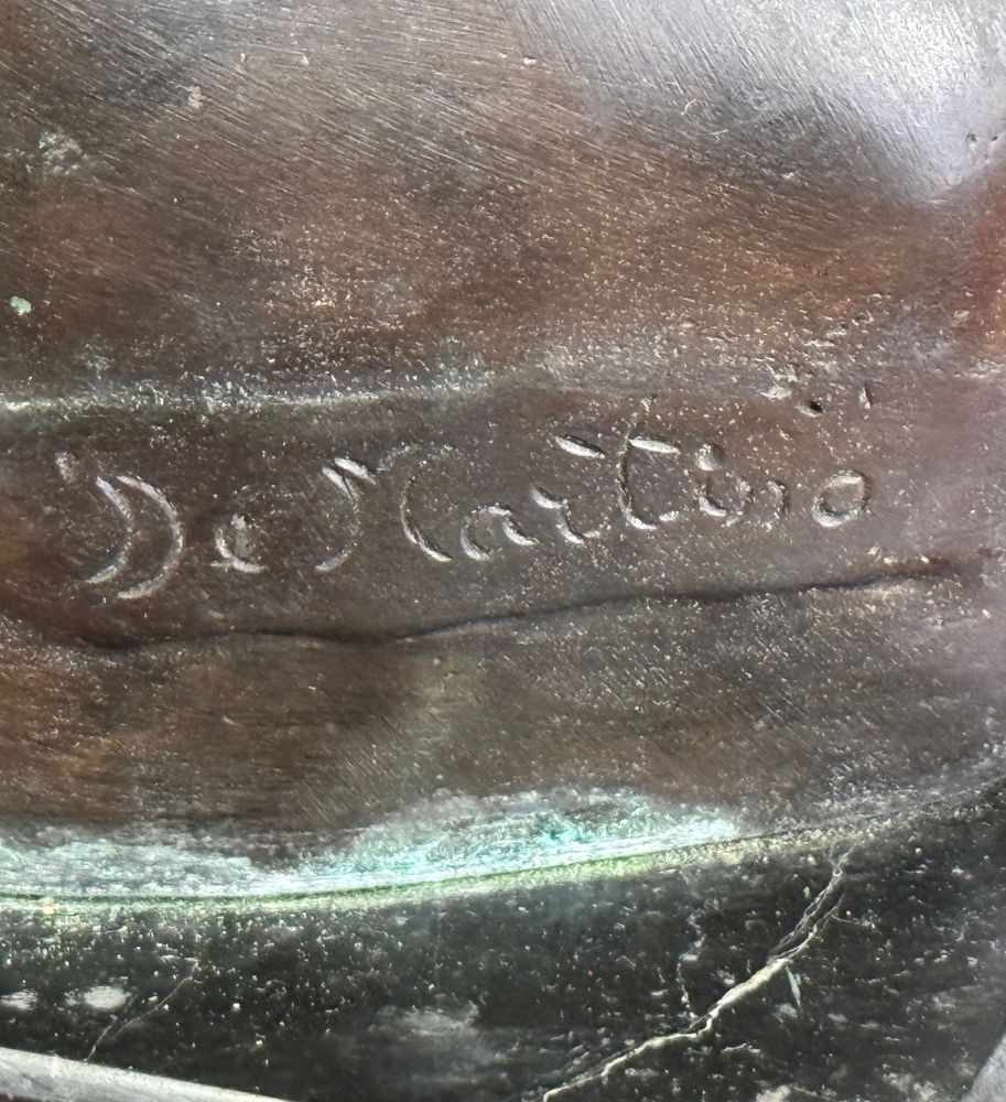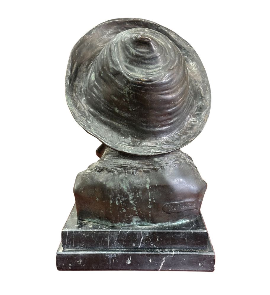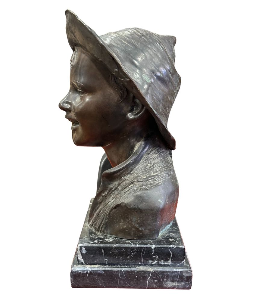 Scultura in bronzo a cera persa, periodo XX secolo raffigurante Bambino con cappello. Dimensioni: 38x24x17 cm. Reca firma sul retro da De Martino. Scultura in buone condizioni.