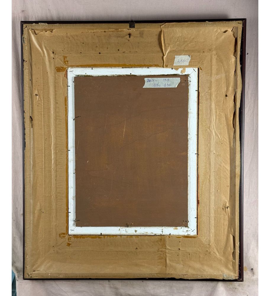 Dipinto olio su pannello, periodo XX secolo scuola Italiana, raffigurante Strada napoletana con personaggi. Dimensioni compreso cornice: 59x69 cm. Dimensioni interno cornice: 30x40 cm. Da artista anonimo. Opera in ottime condizioni.
