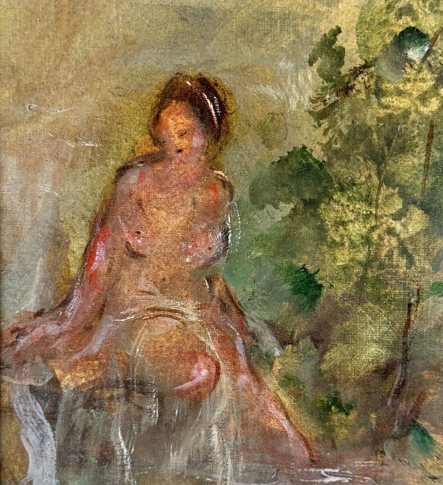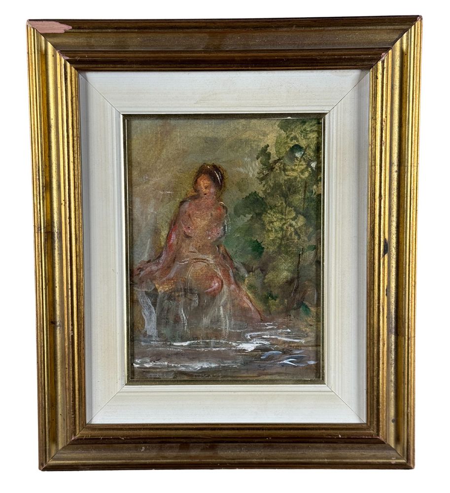 Dipinto olio su cartoncino, periodo XX secolo scuola Italiana, raffigurante Donna al fiume. Dimensioni compreso cornice: 34x40 cm. Dimensioni interno cornice: 18x24 cm. Da artista anonimo. Opera in ottime condizioni.