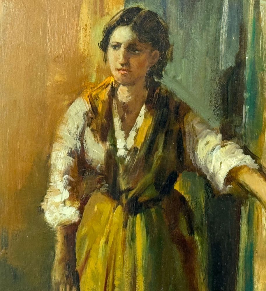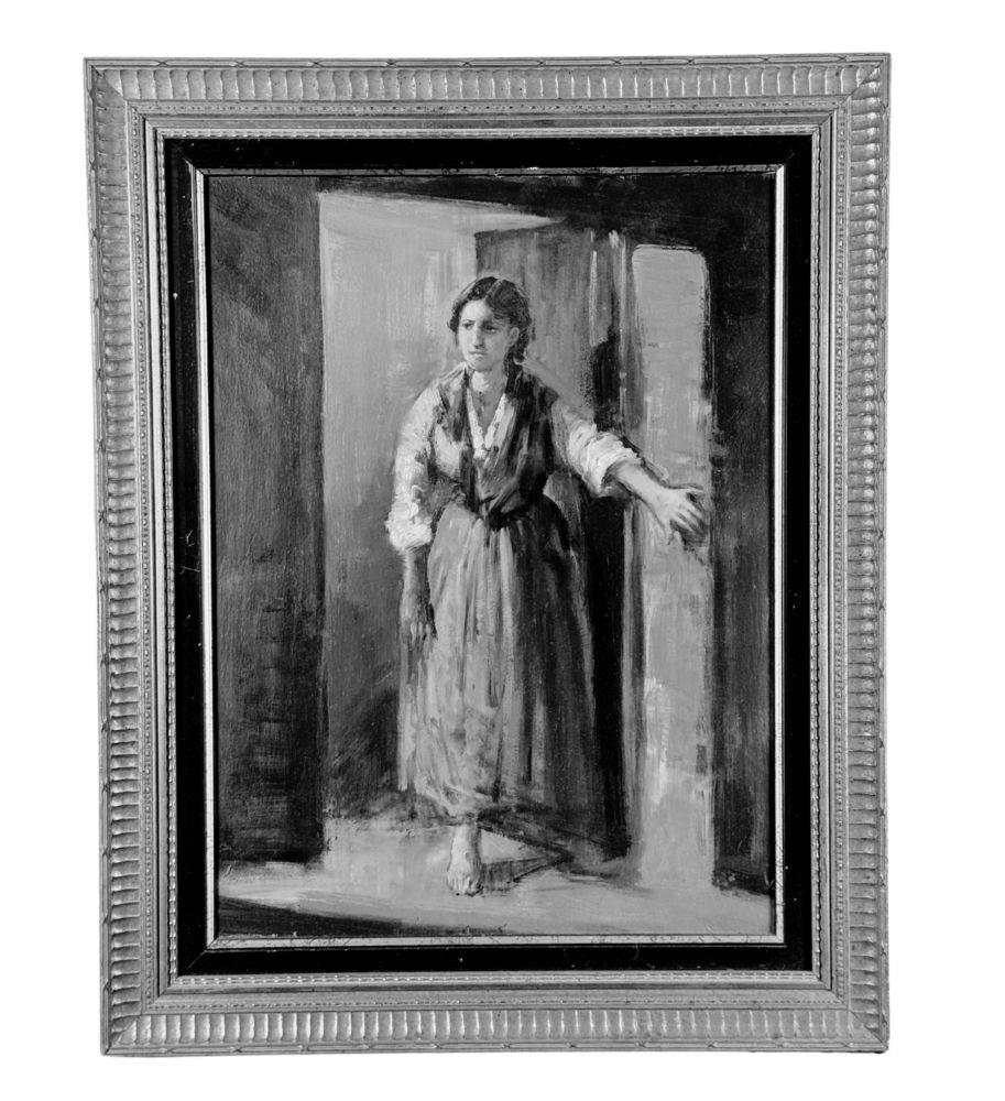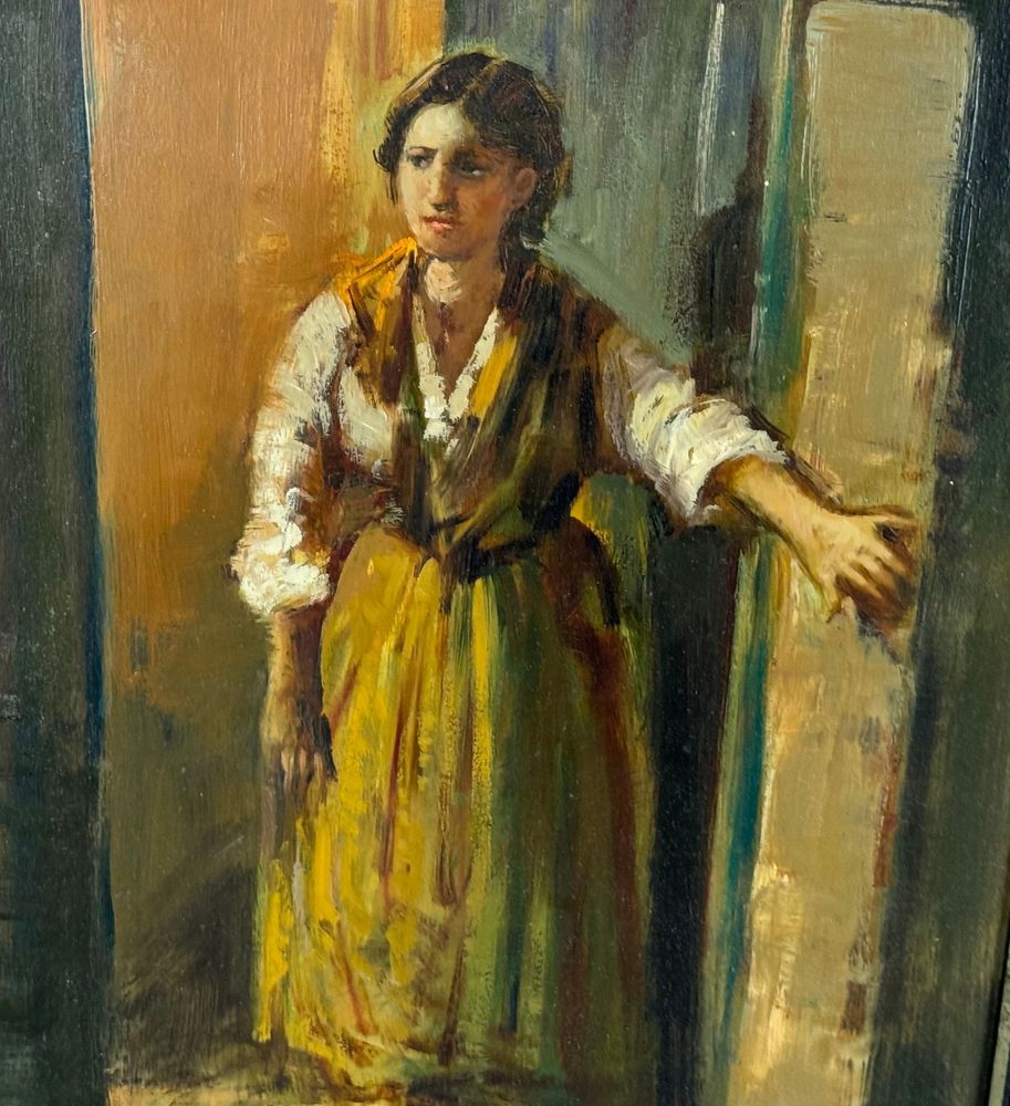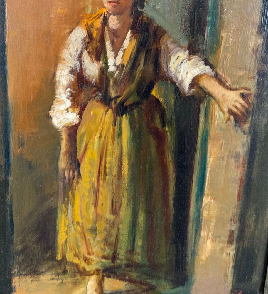 Dipinto olio su tavola, periodo XX secolo scuola Napoletana, raffigurante Donna alla porta. Dimensioni compreso cornice: 41x51 cm. Dimensioni interno cornice: 30x40 cm. Da artista anonimo. Opera in ottime condizioni.
