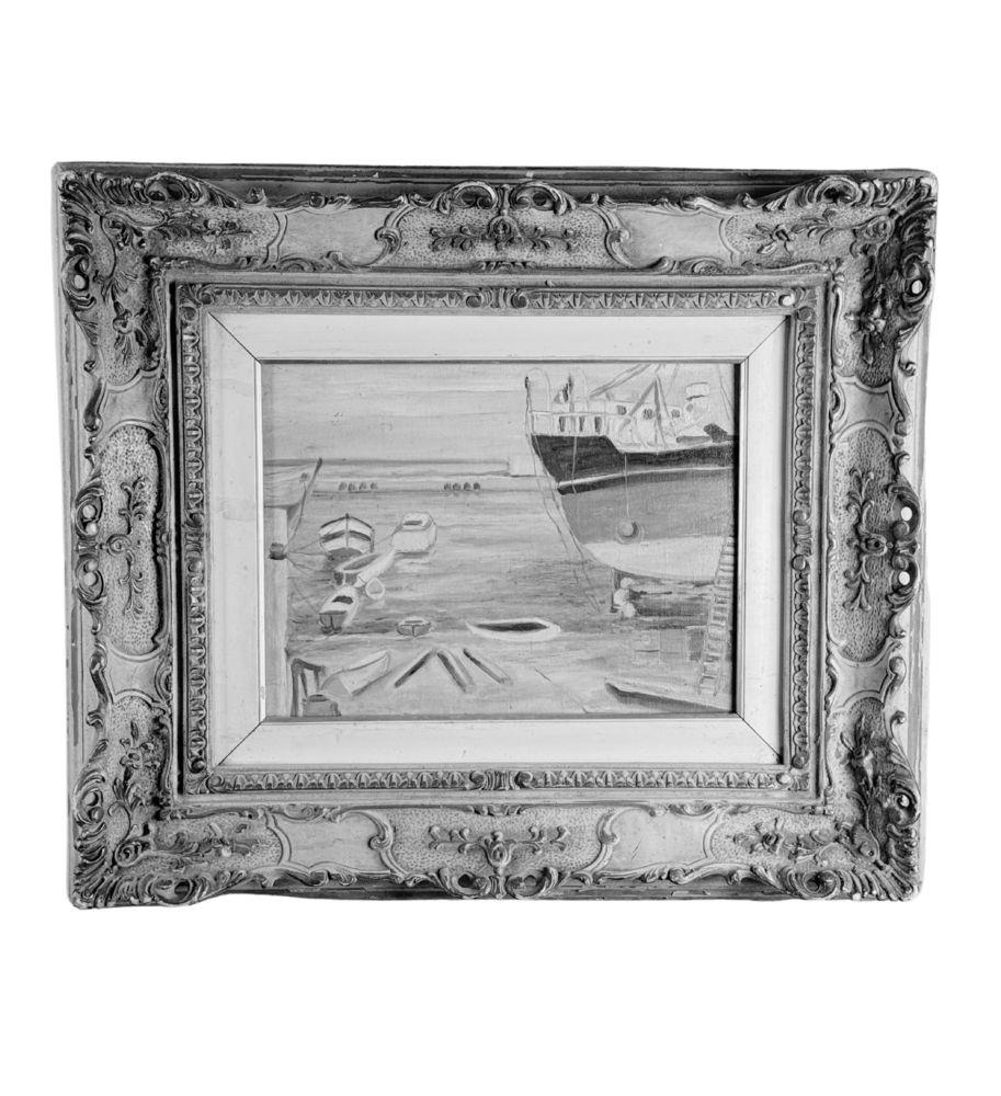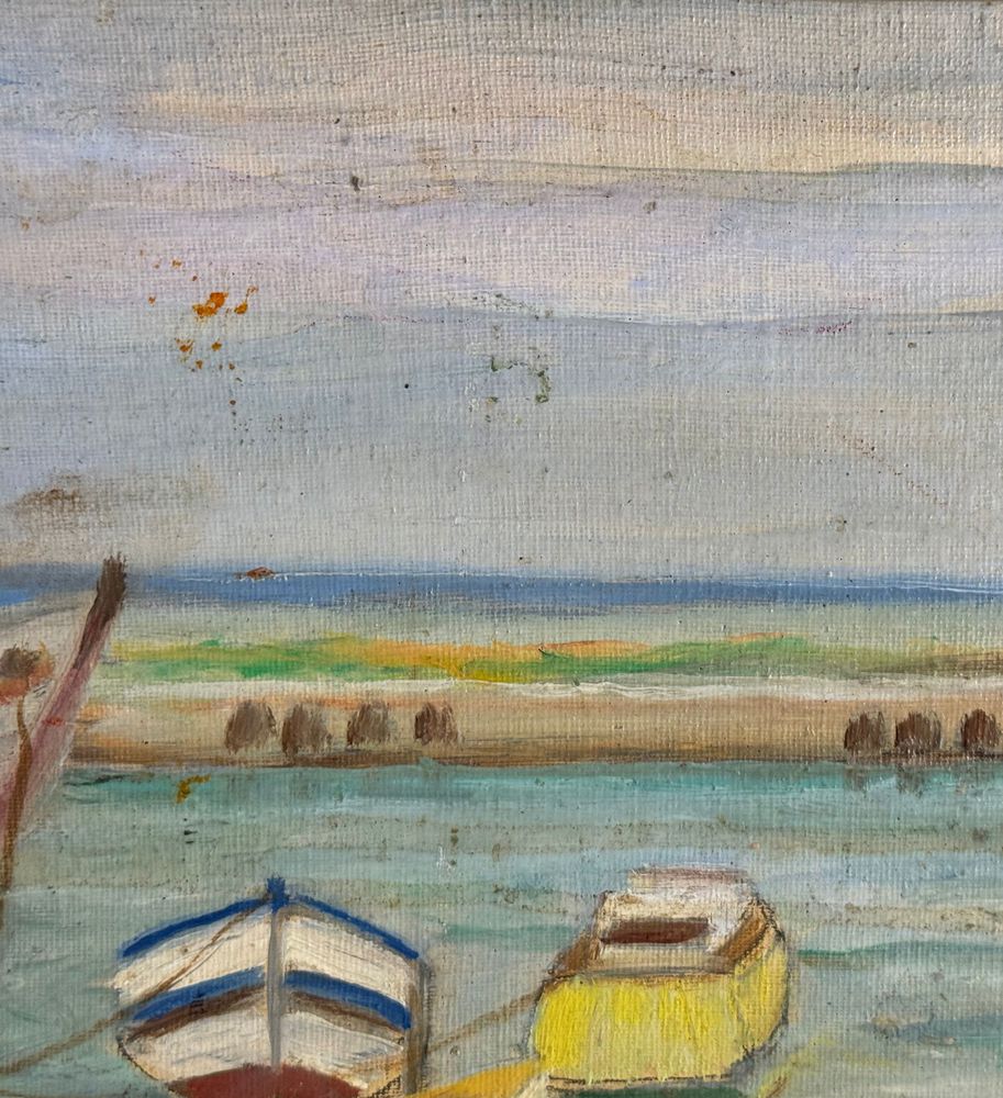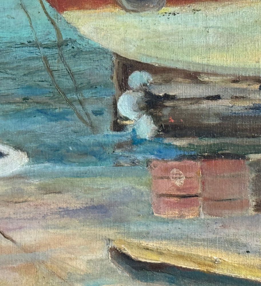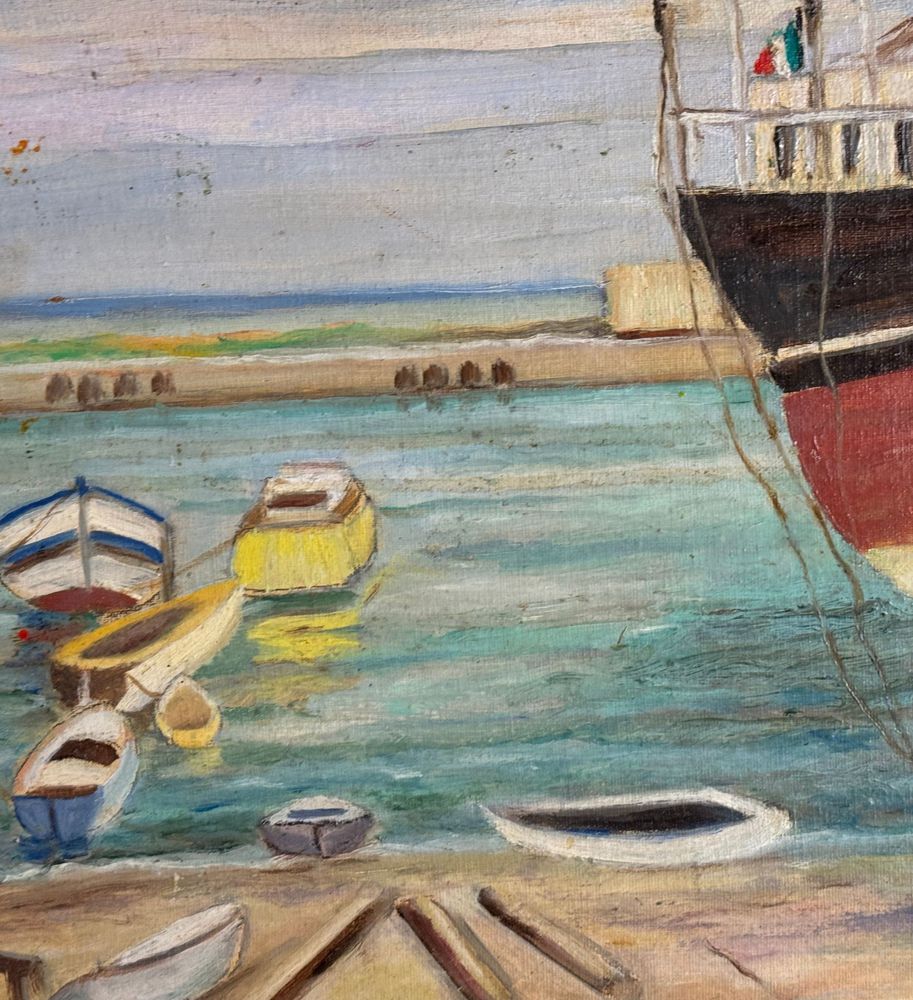 Dipinto olio su cartoncino, periodo XX secolo scuola Napoletana, raffigurante Porto. Dimensioni compreso cornice: 70x60 cm. Dimensioni interno cornice: 30x40 cm. Da artista anonimo. Opera in ottime condizioni.