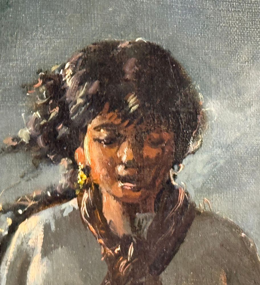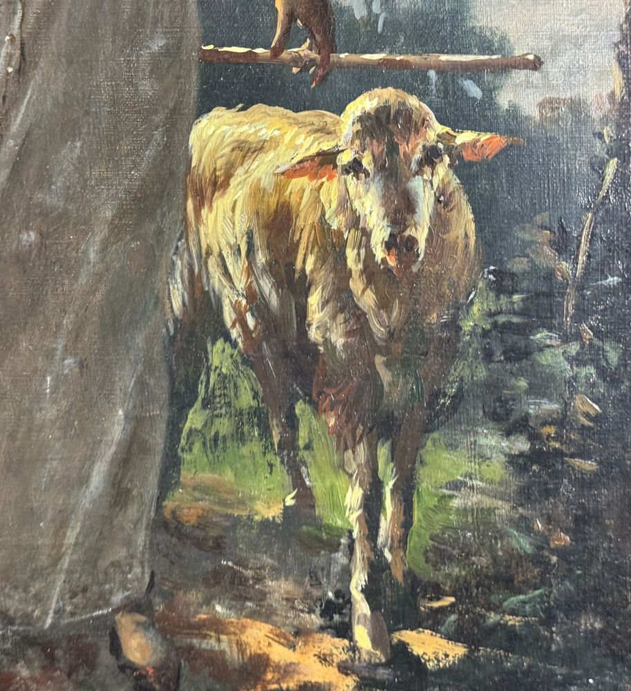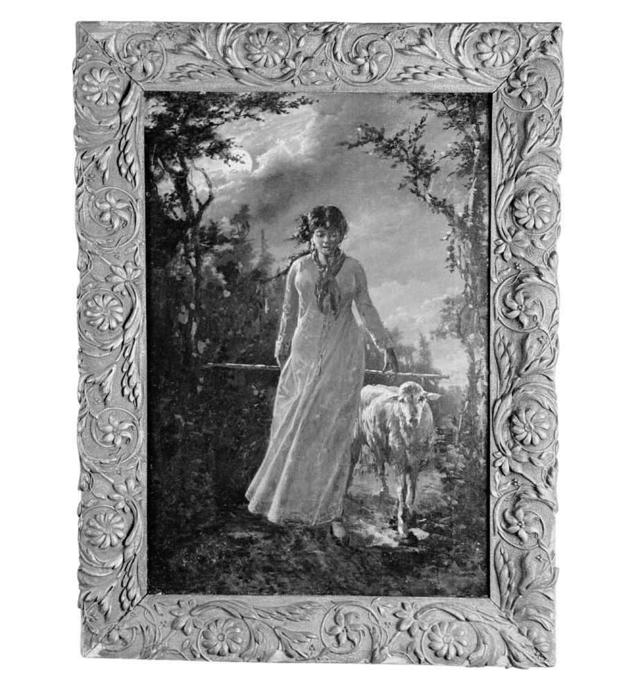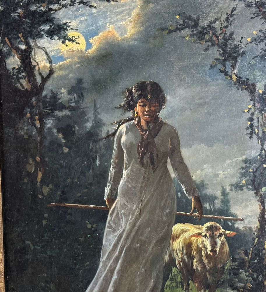 Dipinto olio su tela, periodo XIX/XX secolo scuola Napoletana, raffigurante Donna con gregge. Dimensioni compreso cornice: 48x64 cm. Dimensioni interno cornice: 36,5x51,5 cm. Da artista anonimo. Opera in ottime condizioni.