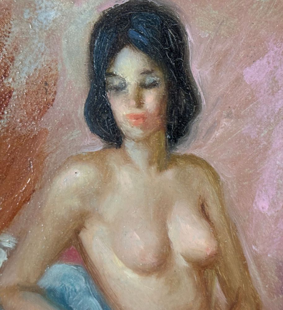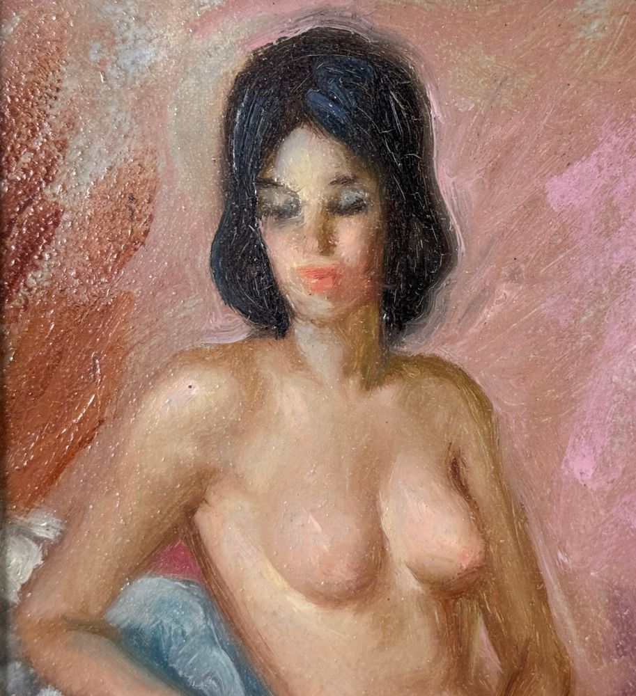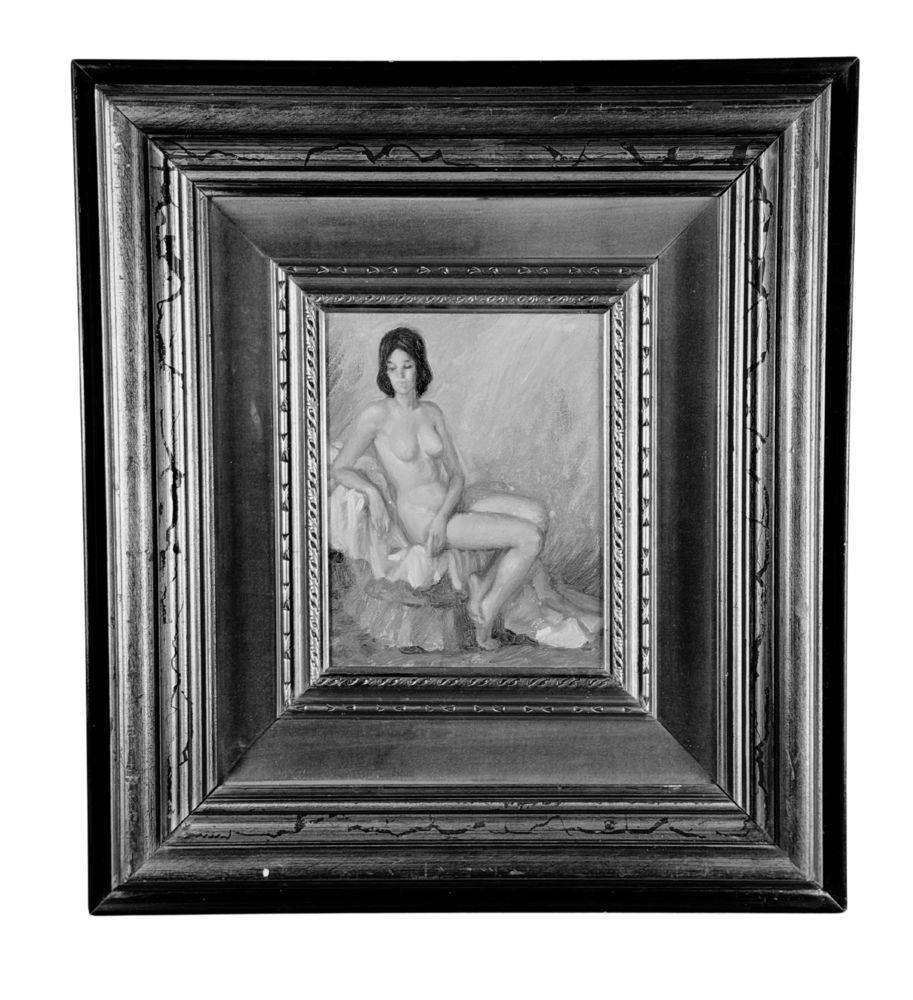Dipinto olio su tela, periodo XX secolo scuola Napoletana, raffigurante Nudo di donna. Dimensioni compreso cornice: 53x58 cm. Dimensioni interno cornice: 20x25 cm. Da artista anonimo. Opera in ottime condizioni.