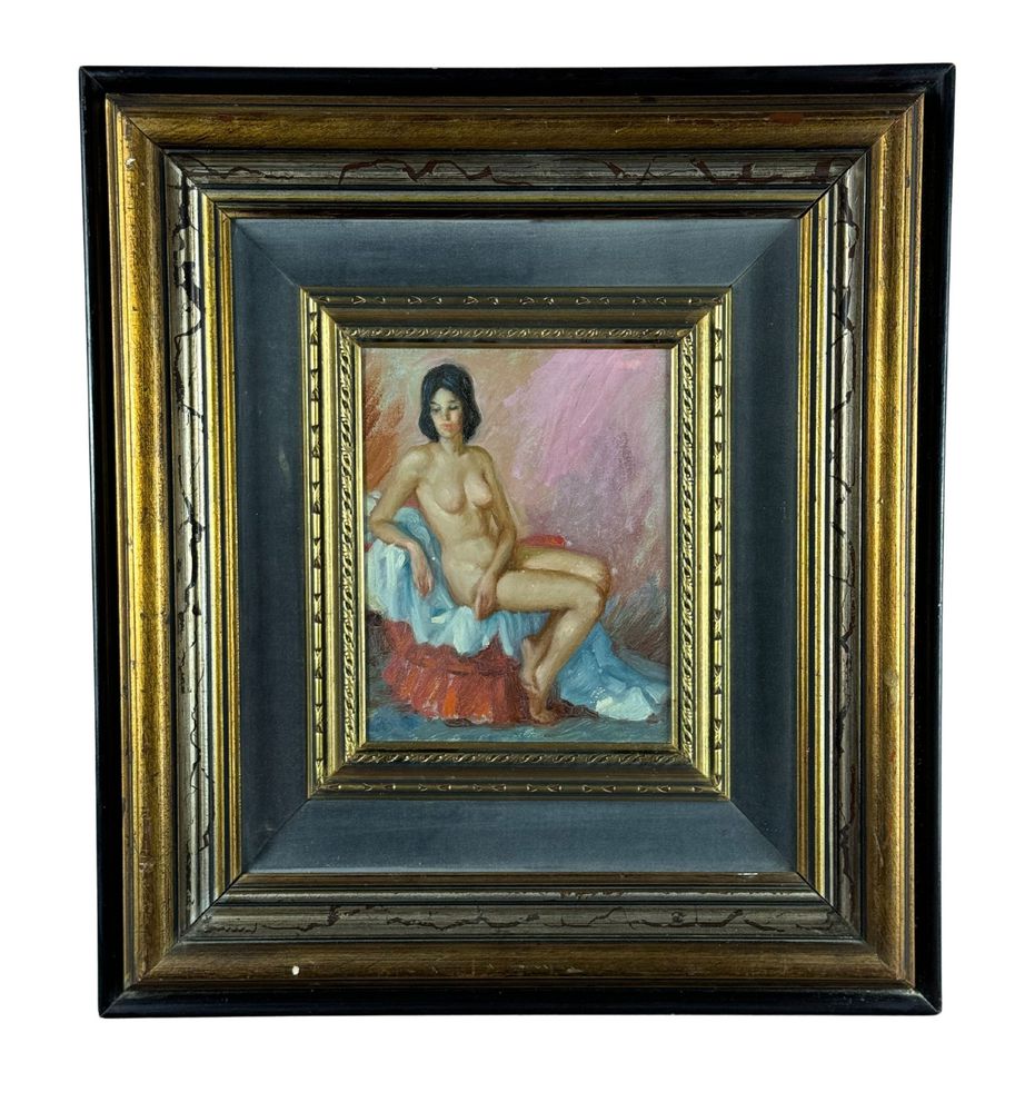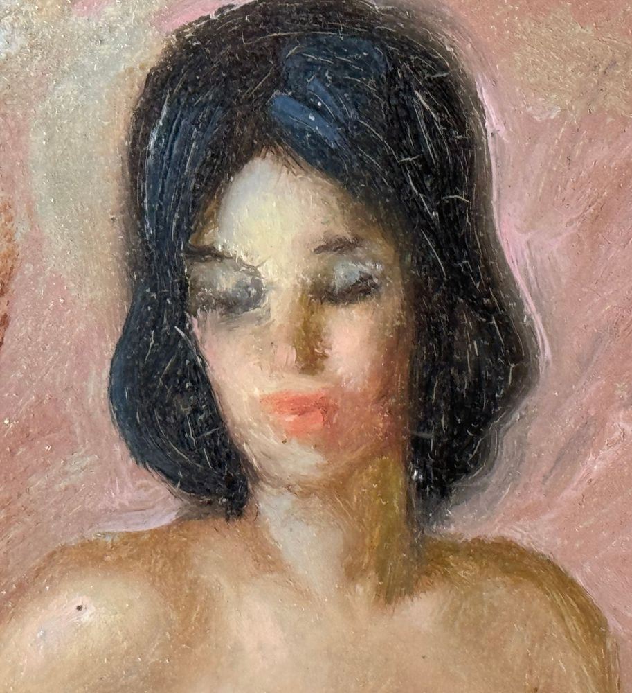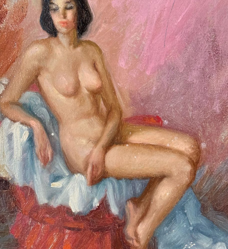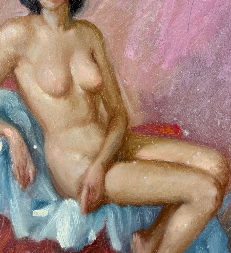 Dipinto olio su tela, periodo XX secolo scuola Napoletana, raffigurante Nudo di donna. Dimensioni compreso cornice: 53x58 cm. Dimensioni interno cornice: 20x25 cm. Da artista anonimo. Opera in ottime condizioni.