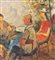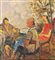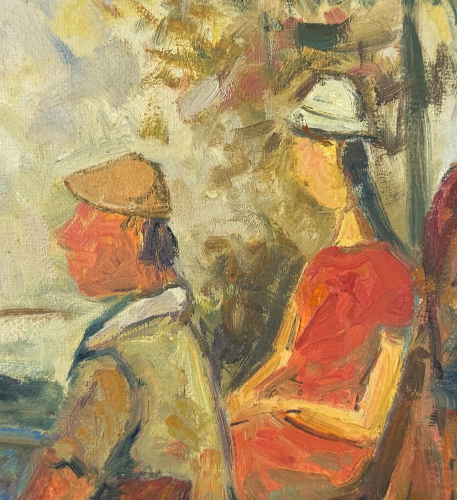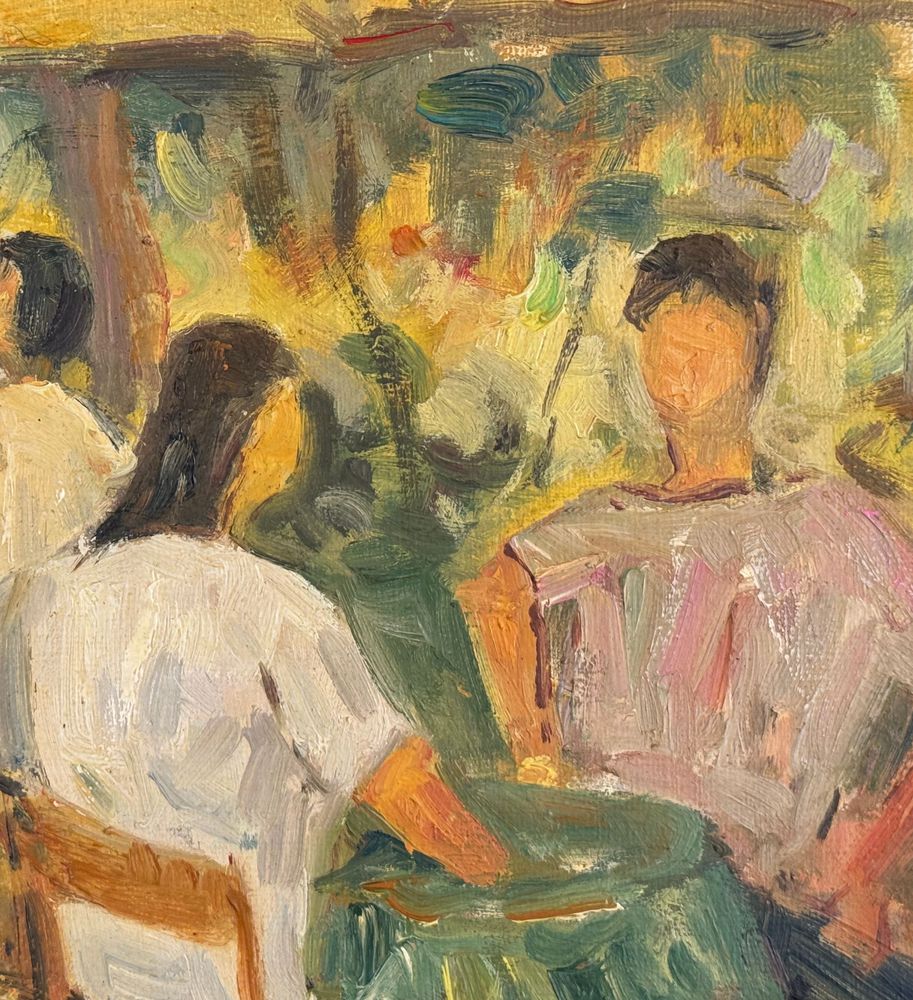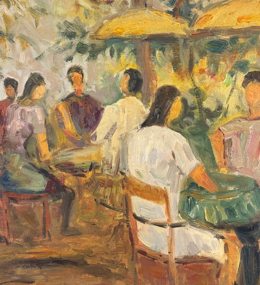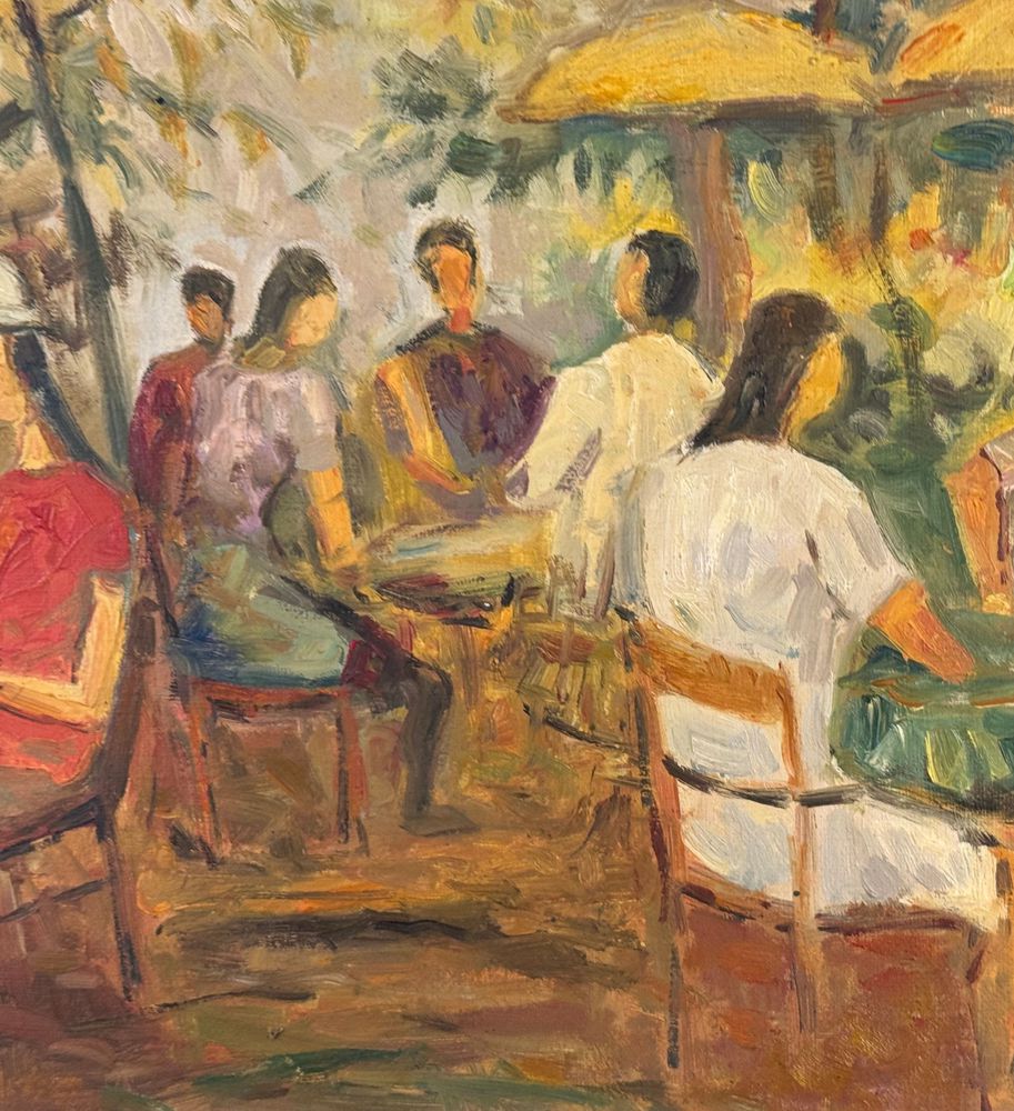 Dipinto olio su tela, periodo XX secolo scuola Napoletana, raffigurante Personaggi in giardino. Dimensioni compreso cornice: 75x65 cm. Dimensioni interno cornice: 55x45 cm. Da artista anonimo. Opera in buone condizioni.