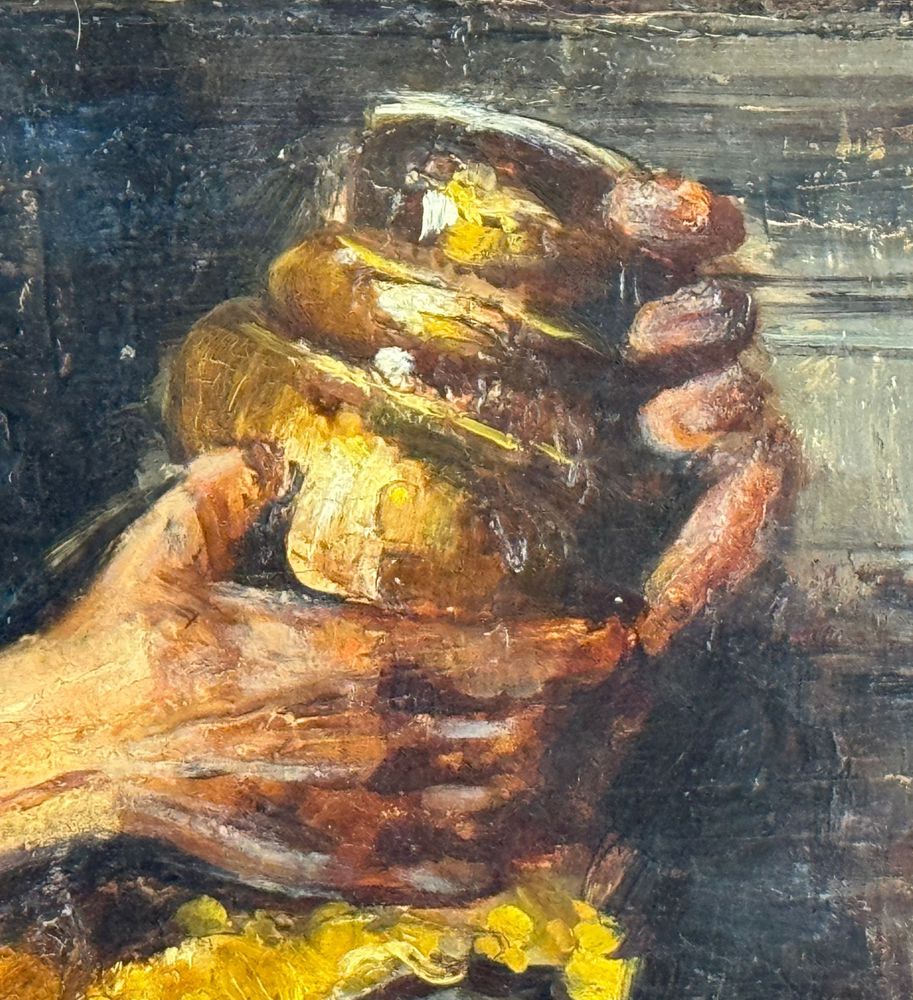 Dipinto olio su tavola, periodo XX secolo scuola Napoletana, raffigurante Venditore. Dimensioni compreso cornice: 73x82 cm. Dimensioni interno cornice: 58x66 cm. Da artista anonimo. Opera in buone condizioni.