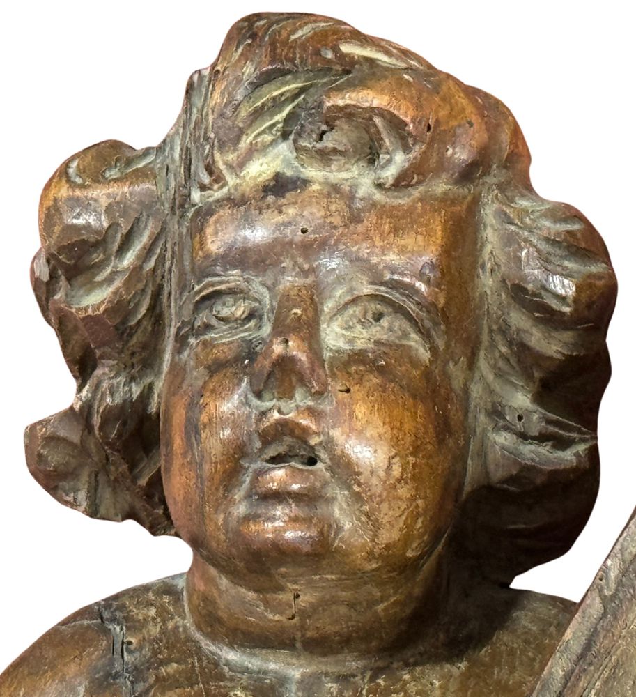Scultura in legno di noce periodo XIX secolo, raffigurante Puttino....