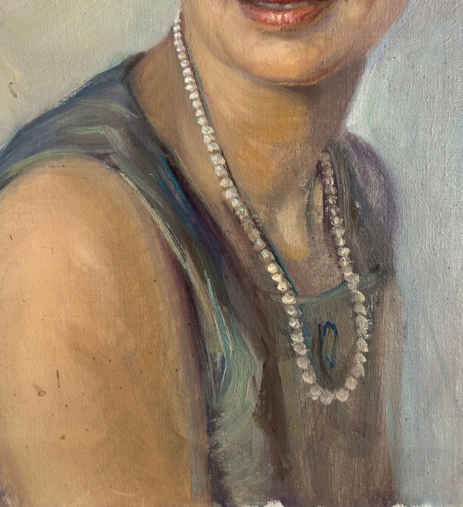 Dipinto olio su tela, periodo XX secolo scuola Italiana, raffigurante Ritratto di donna. Dimensioni compreso cornice: 54x63 cm. Dimensioni interno cornice: 43x52 cm. Reca firma in basso a destra da Artista non identificato. Opera in buone condizioni.