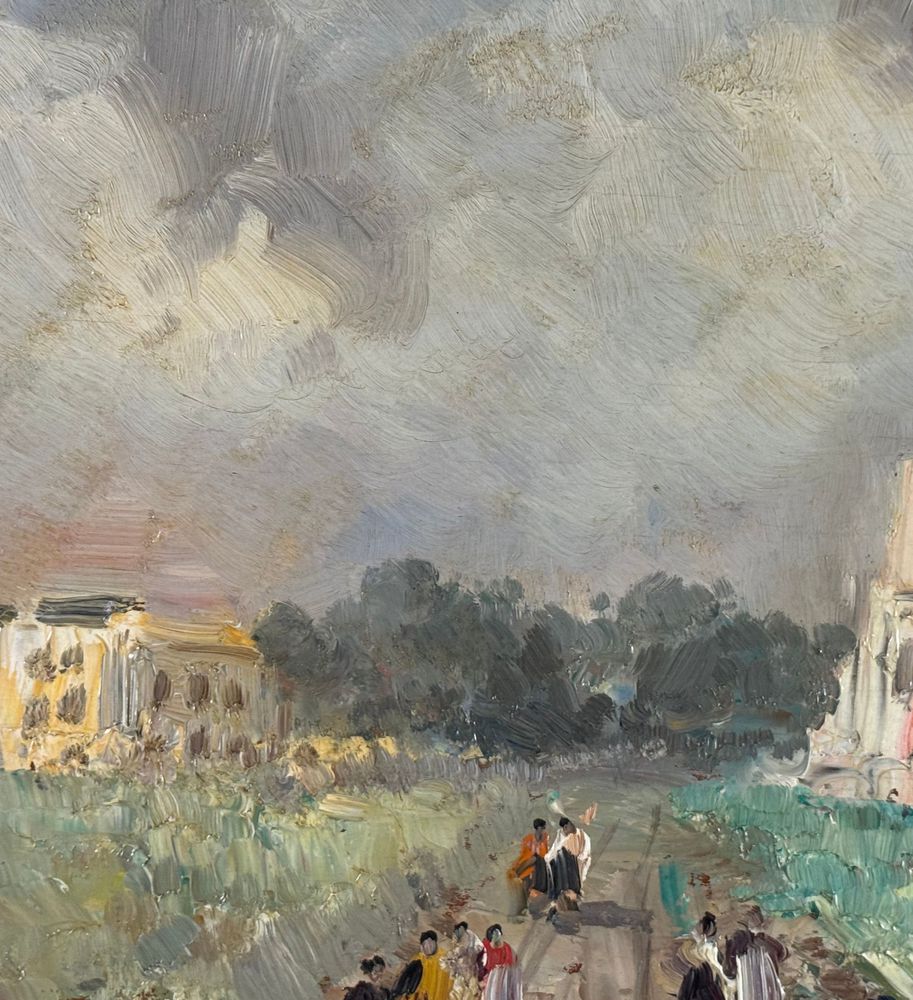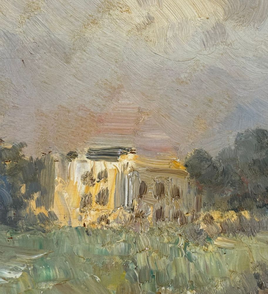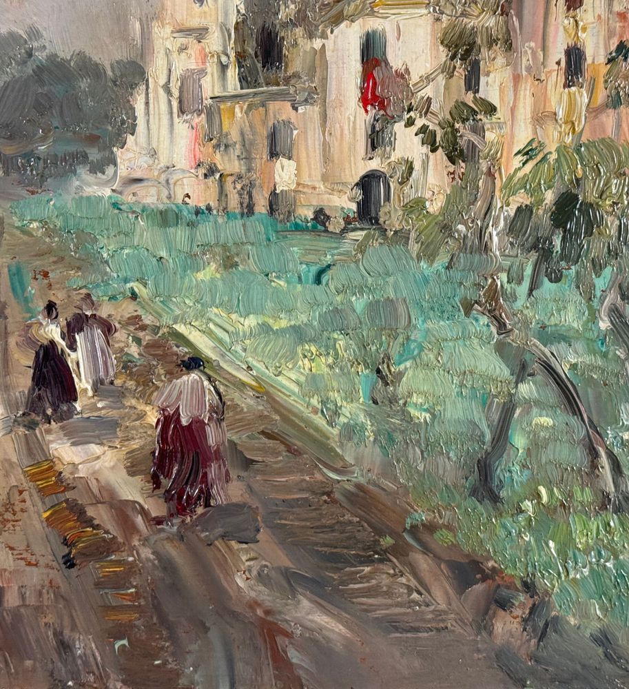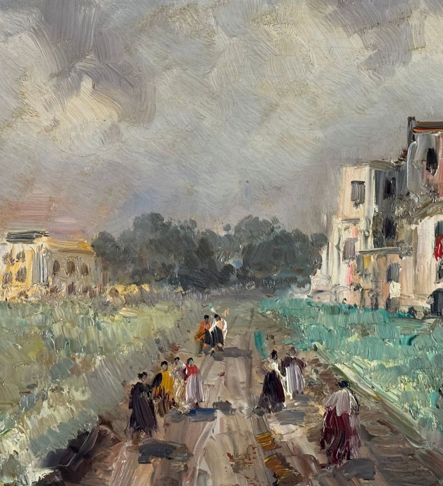 Dipinto olio su pannello, periodo XX secolo scuola Italiana, raffigurante Paesaggio con personaggi. Dimensioni compreso cornice: 75x65 cm. Dimensioni interno cornice: 50x40 cm. Reca firma in basso a sinistra da Francesco Di Marino. Opera in buone condizioni.