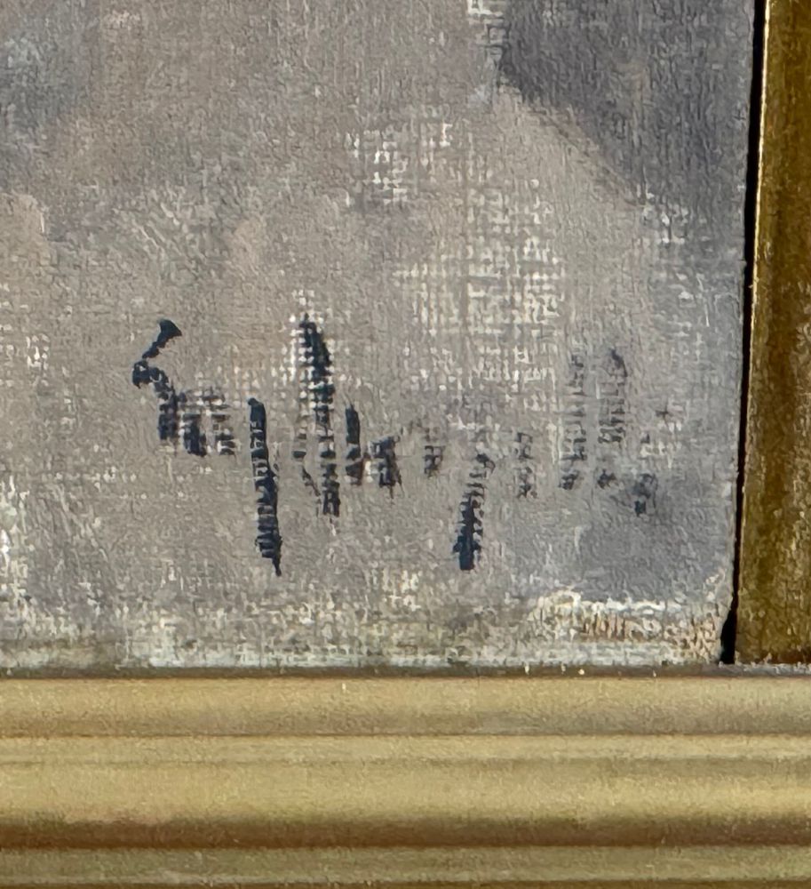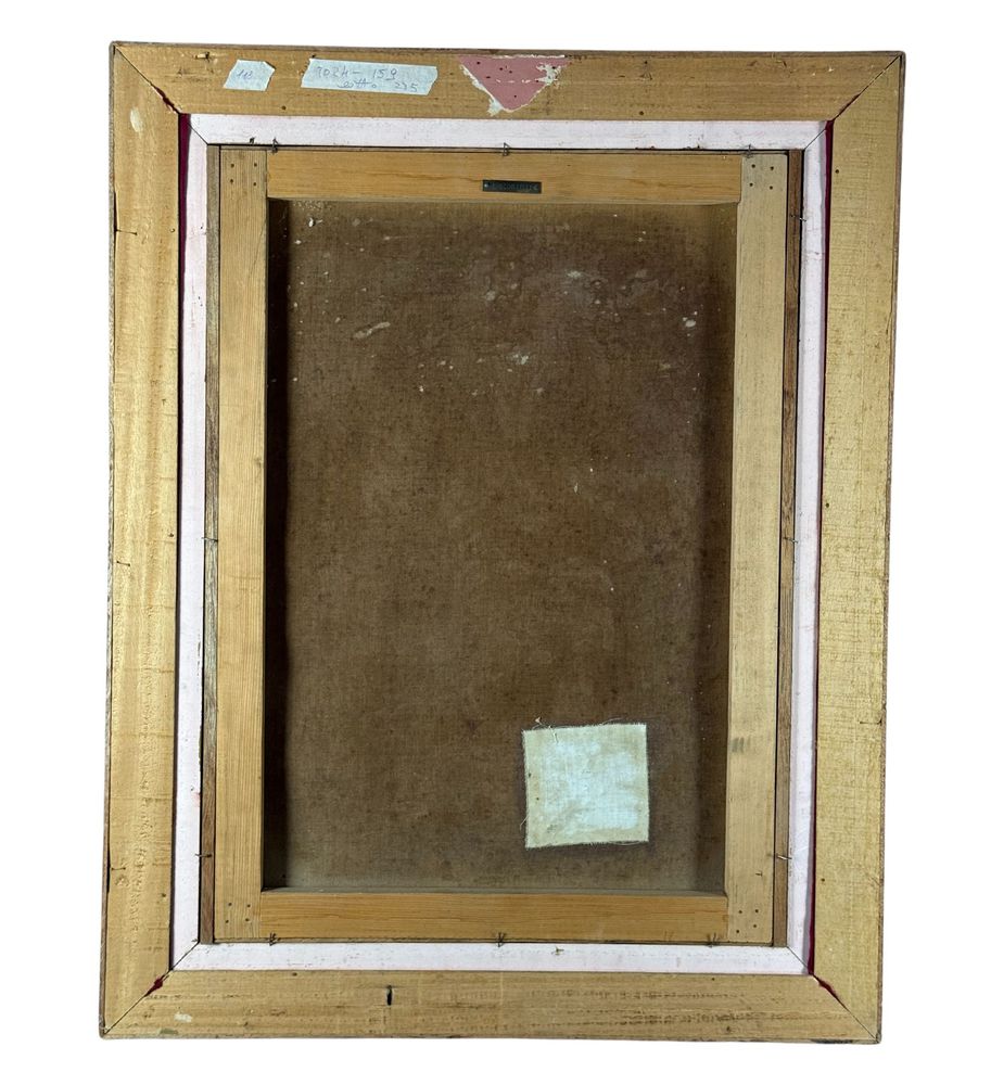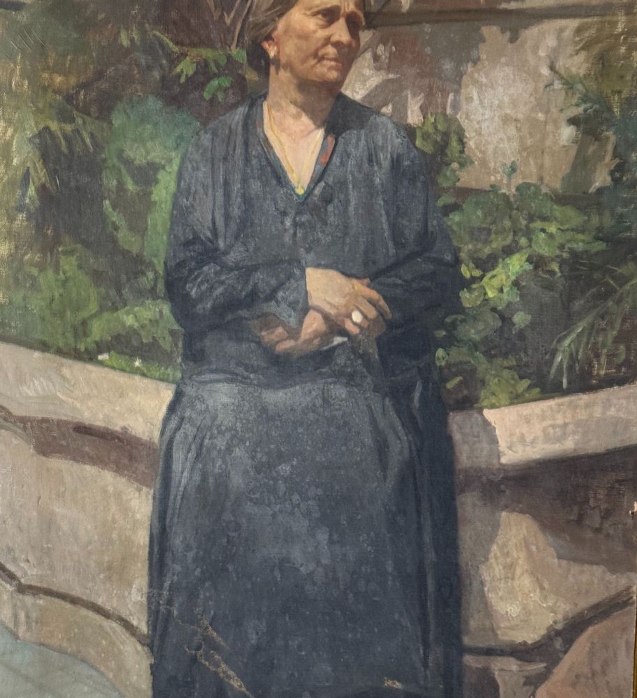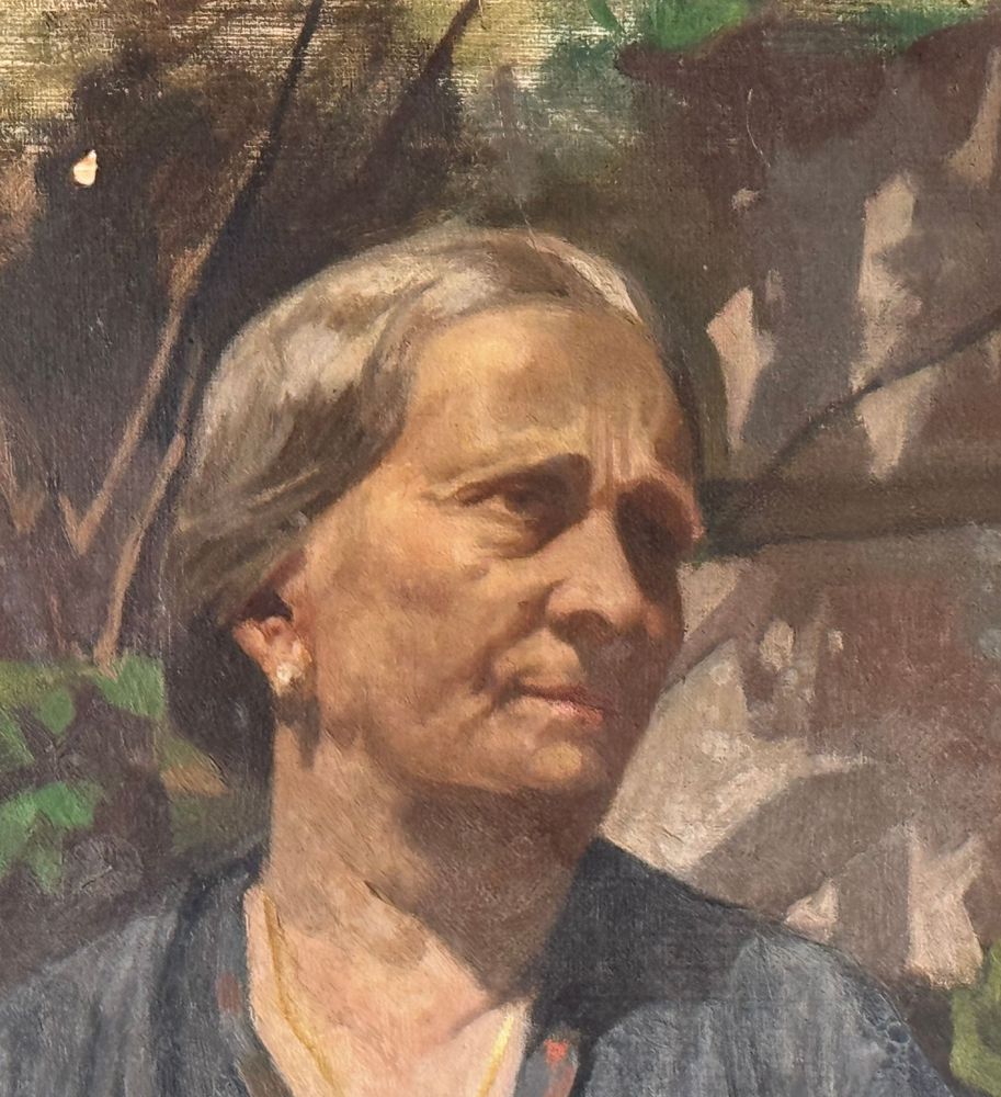 Dipinto olio su tela, periodo XX secolo scuola Italiana, raffigurante Ritratto di donna in giardino. Dimensioni compreso cornice: 72x91 cm. Dimensioni interno cornice: 51x72 cm. Reca firma in basso a destra da artista non identificato. Opera in discrete condizioni.