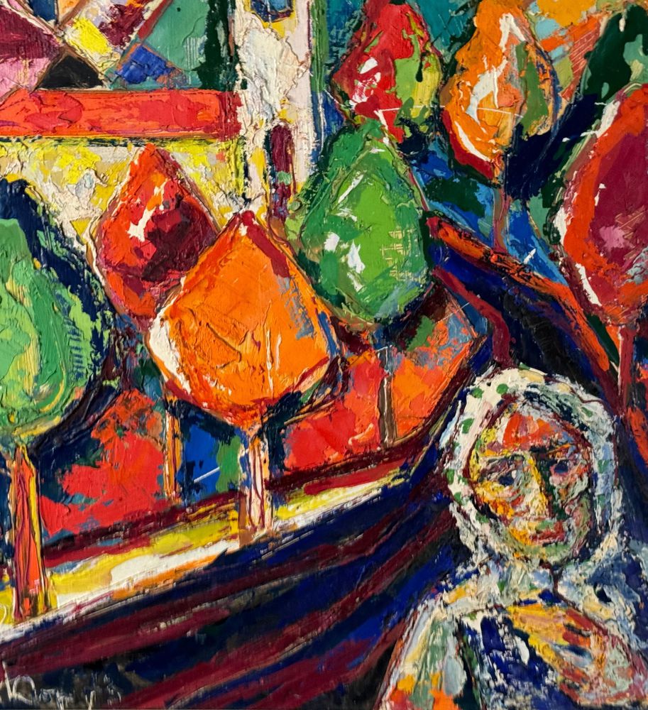 Dipinto olio su pannello, periodo XX secolo scuola Italiana, raffigurante Strada con figure. Dimensioni compreso cornice: 74x91 cm. Dimensioni interno cornice: 45x59 cm. Reca firma in basso a sinistra da Péter Prokop. Opera in buone condizioni.