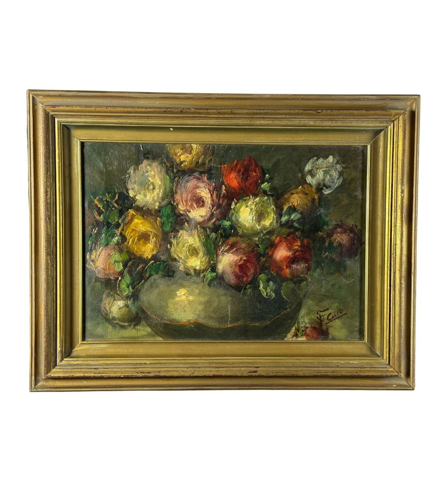 Dipinto olio su tela, periodo XX secolo scuola Italiana, raffigurante Fiori. Dimensioni compreso cornice: 55x72 cm. Dimensioni interno cornice: 38x55 cm. Reca firma in basso a destra da Giuseppe Alberto Cocco. Opera in buone condizioni.