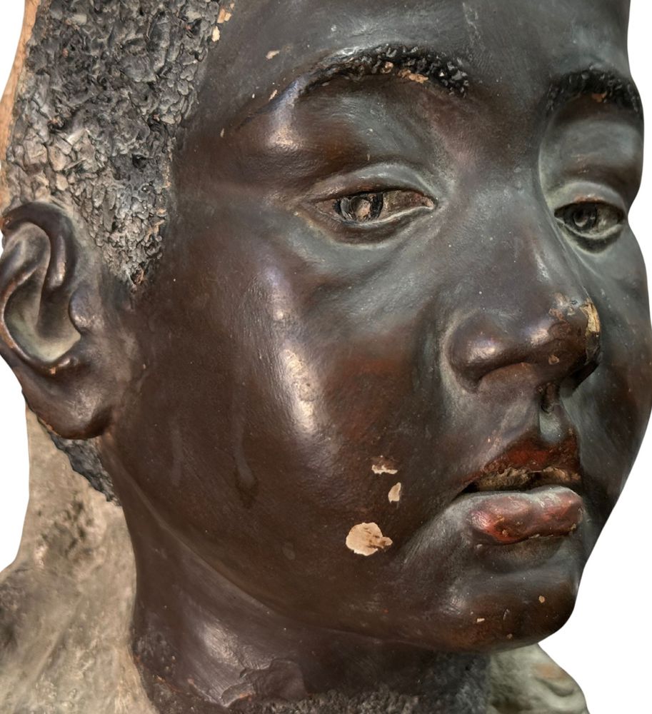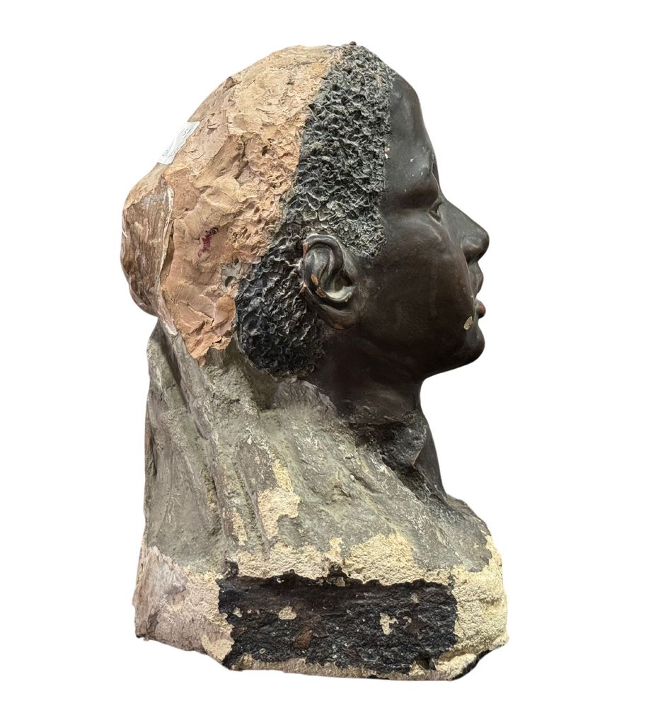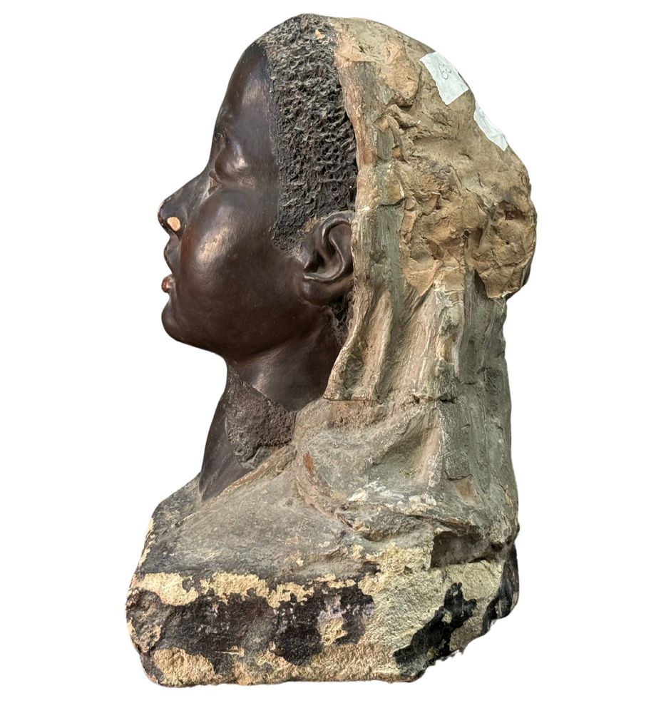 Scultura in terracotta, periodo XIX secolo, raffigurante Busto di donna africana. Dimensioni: h32x21x21 cm. Scultura integra con segni di vissuto come da foto allegate.