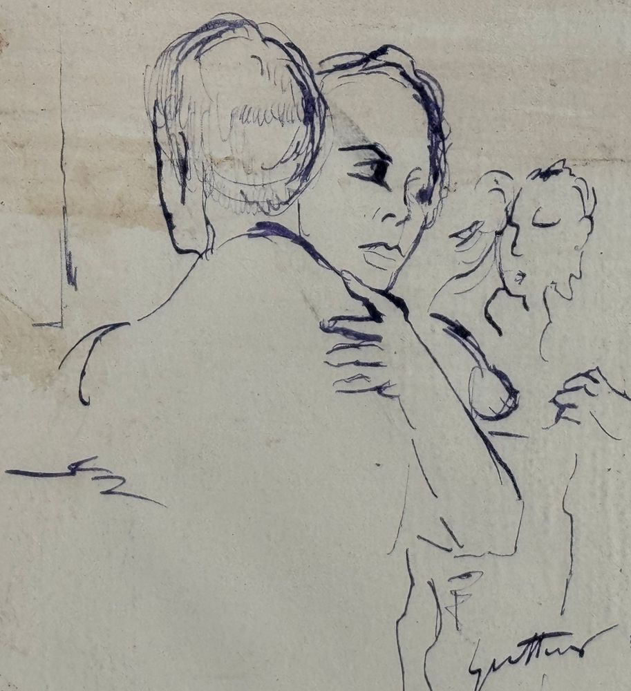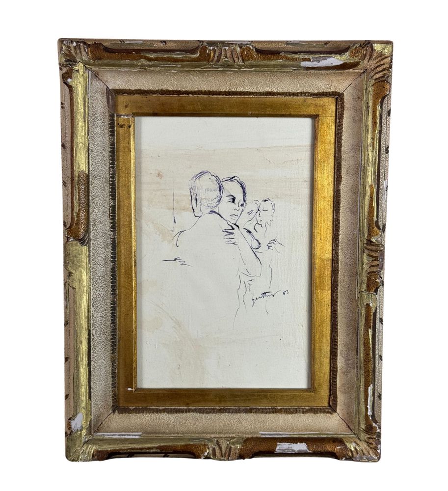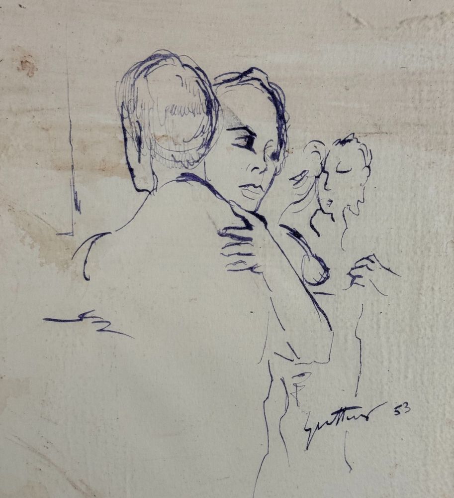 Disegno china su carta, periodo XX secolo (1953), raffigurante "Il ballo". Dimensioni compreso cornice: 34x45 cm. Dimensioni interno cornice: 31x21 cm. Reca firma in basso a destra da Guttuso. Opera in buone condizioni.