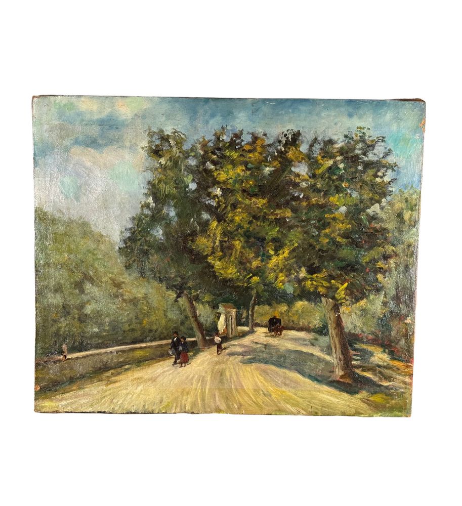 Dipinto olio su tela, periodo XIX secolo scuola Italiana, raffigurante Paesaggio. Dimensioni: 78x65 cm. Da artista anonimo. Opera in buone condizioni. Da segnalare caduta di calore, piccoli punti di restauro e taglio di circa 2 cm nella parte bassa a sinistra della tela.
