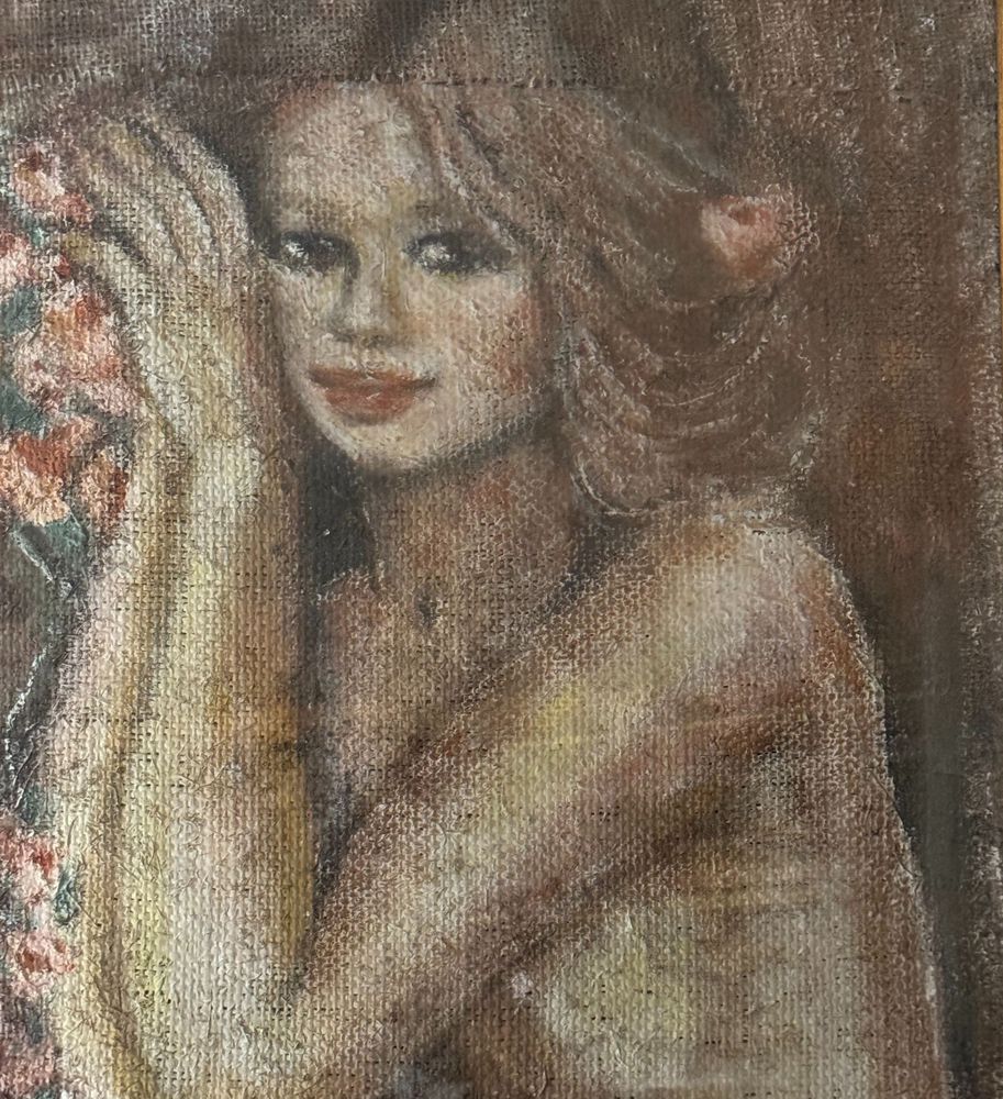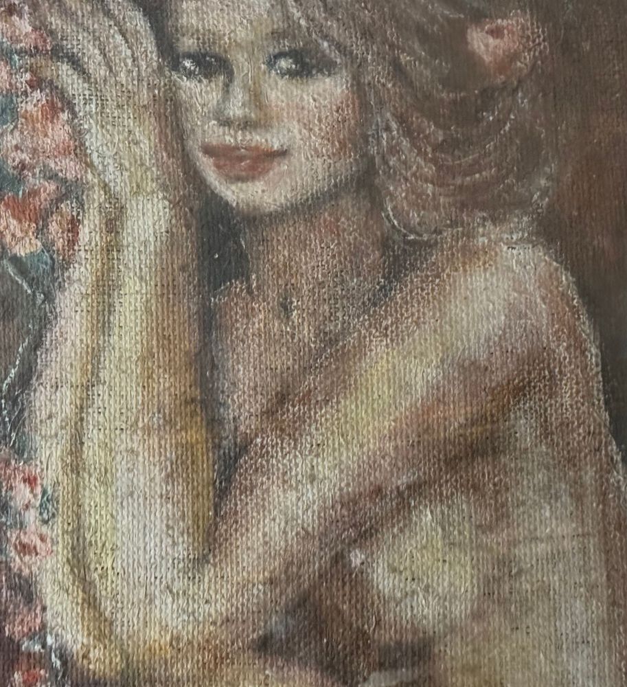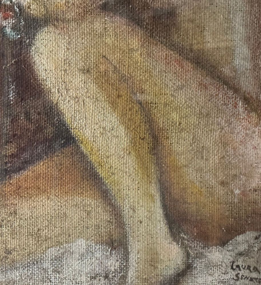 Dipinto olio su tela, periodo XX secolo scuola Italiana, raffigurante Nudo di donna. Dimensioni compreso cornice: 80x154 cm. Dimensioni interno cornice: 64x138 cm. Reca firma in basso a destra da Laura Senatore. Opera in buone condizioni.