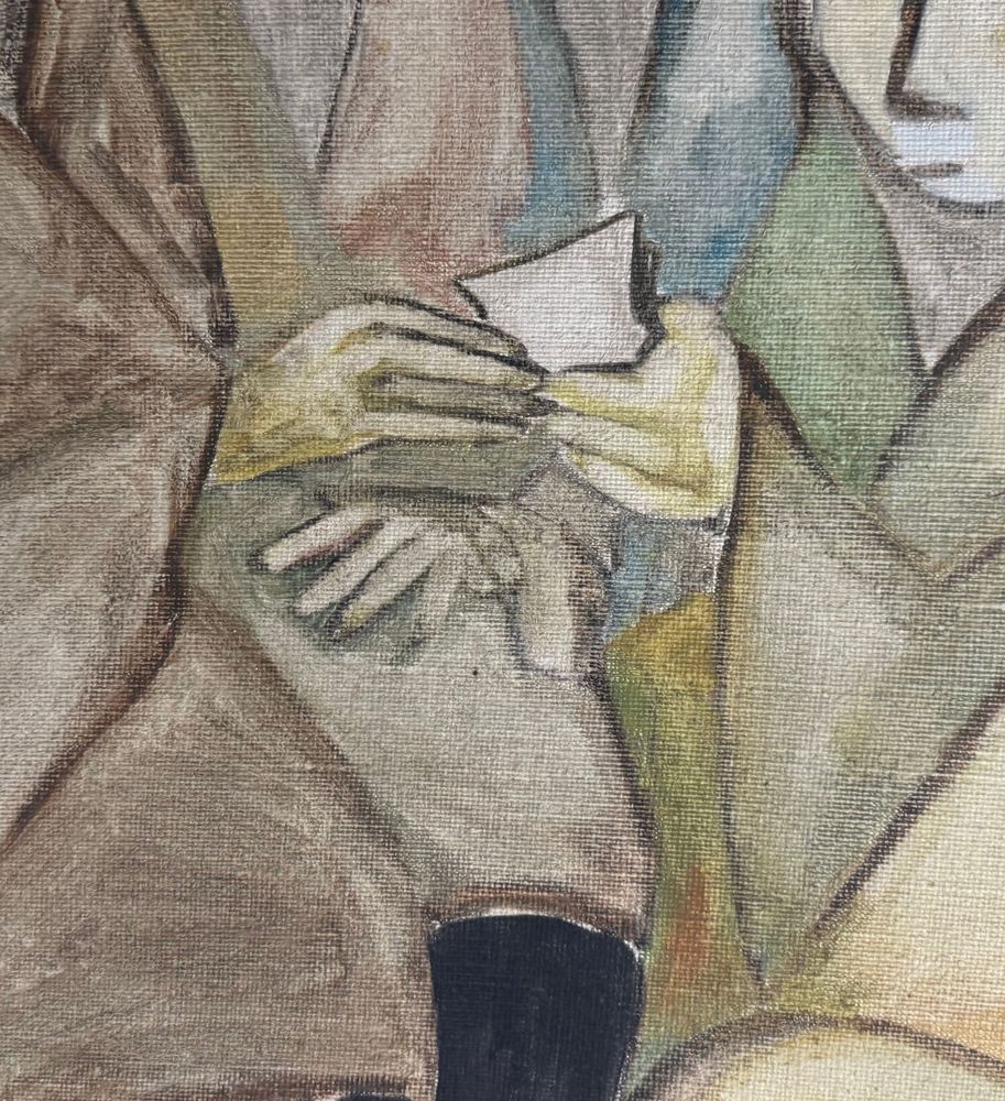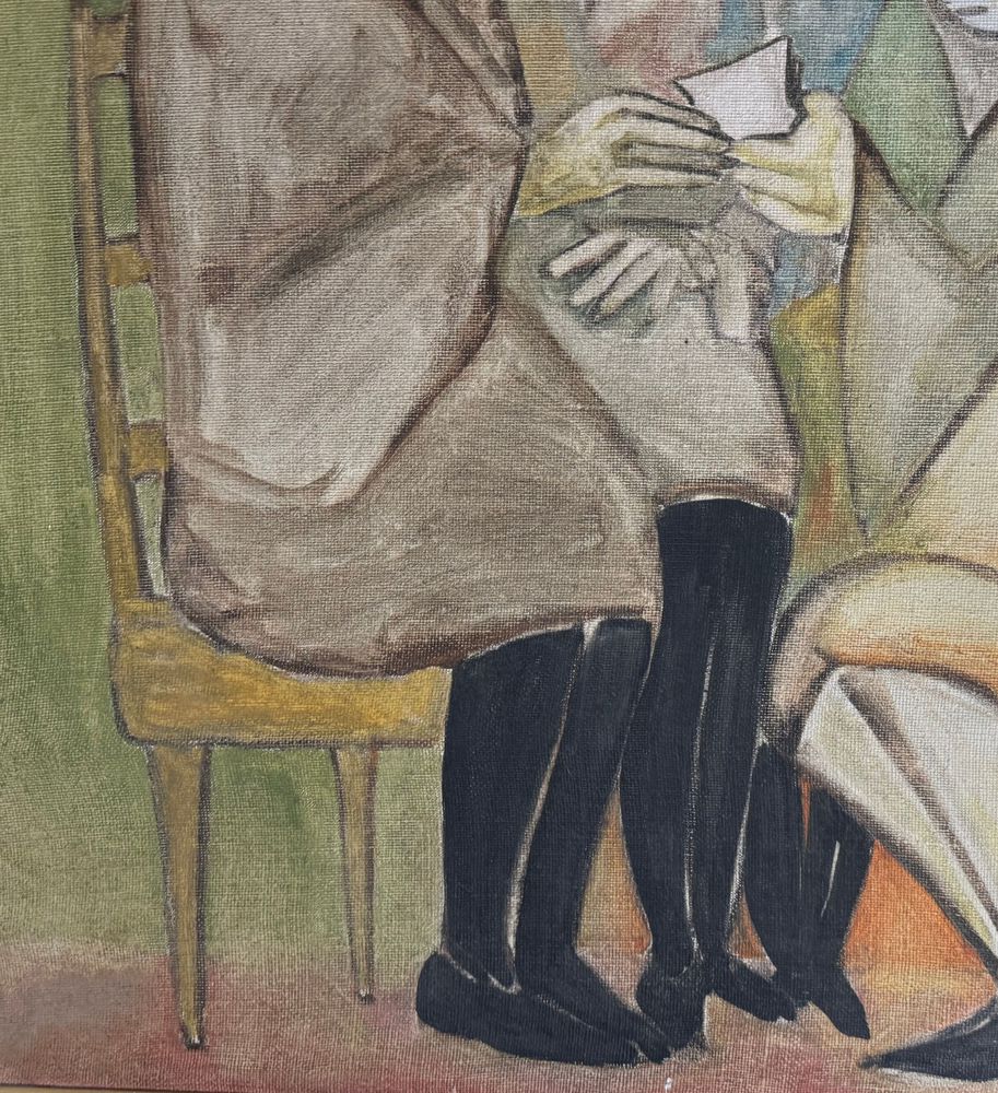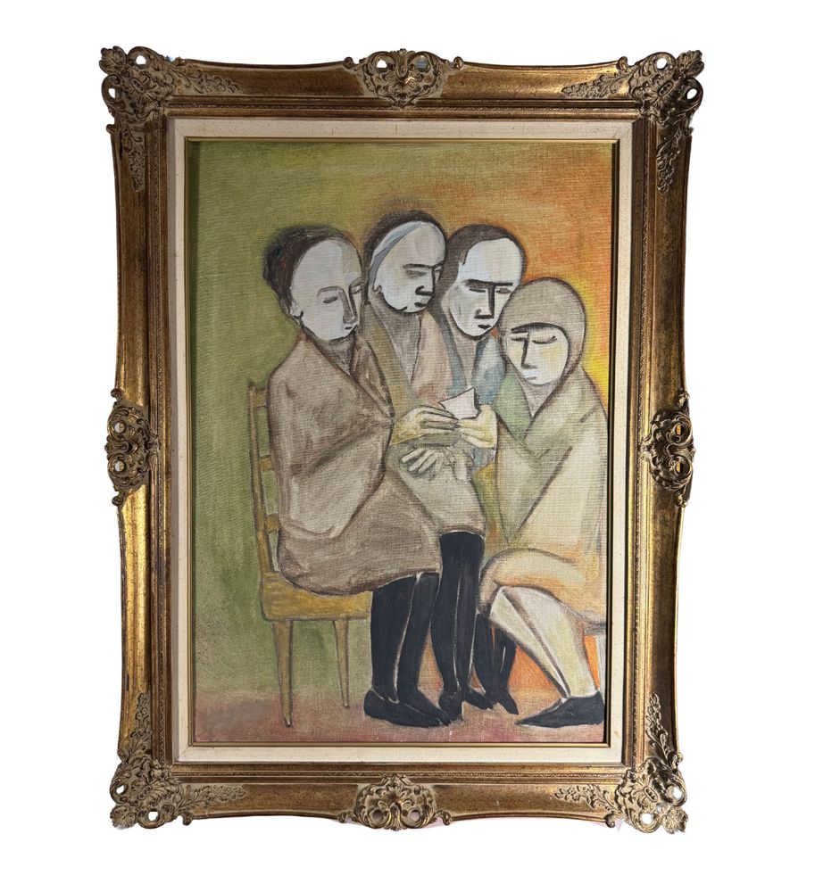Dipinto olio su tela, periodo XX secolo scuola Italiana, raffigurante Quattro personaggi. Dimensioni compreso cornice: 92x123 cm. Dimensioni interno cornice: 71x100 cm. Da artista anonimo. Opera in buone condizioni.