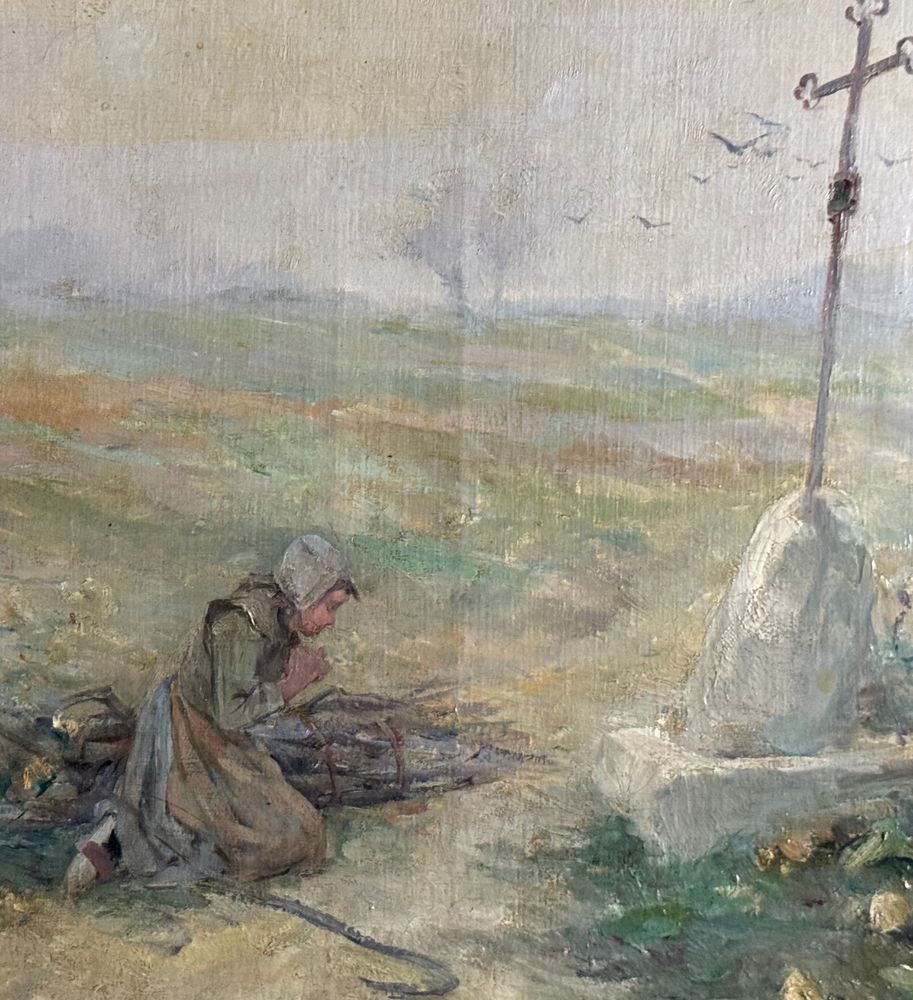 Dipinto olio su tela, periodo XX secolo scuola Francese, raffigurante Donna che prega. Dimensioni compreso cornice: 94x67 cm. Dimensioni interno cornice: 81x55 cm. Reca firma in basso a sinistra da Paul Henri Simons. Opera in buone condizioni. Da segnalare un piccolo restauro nella parte alta destra della tela.