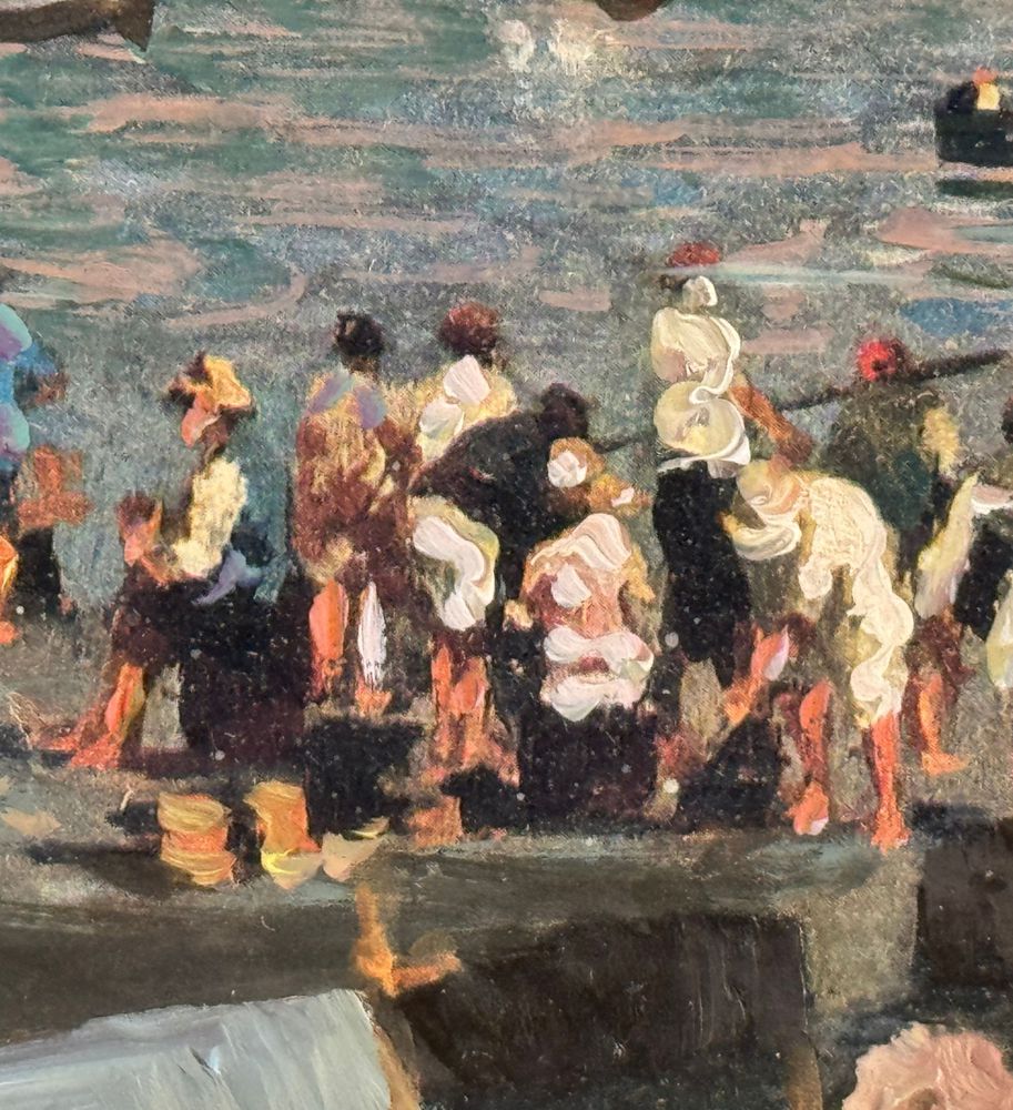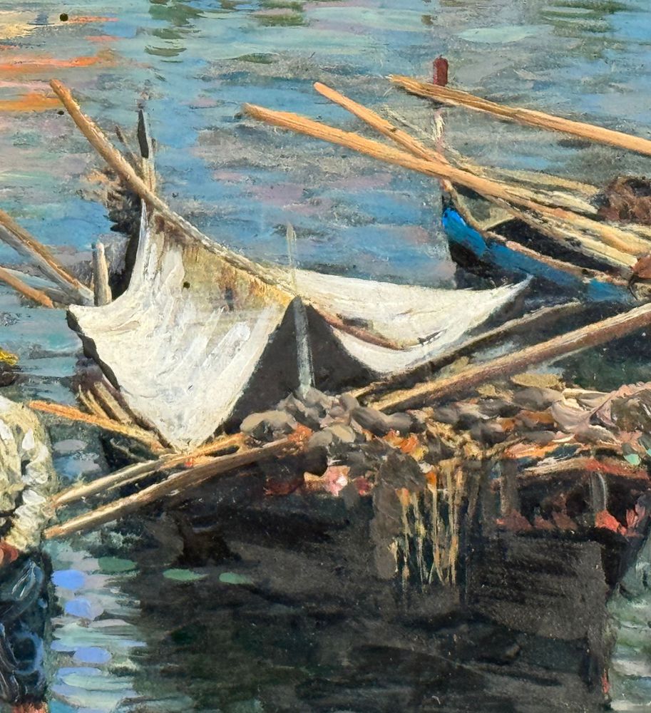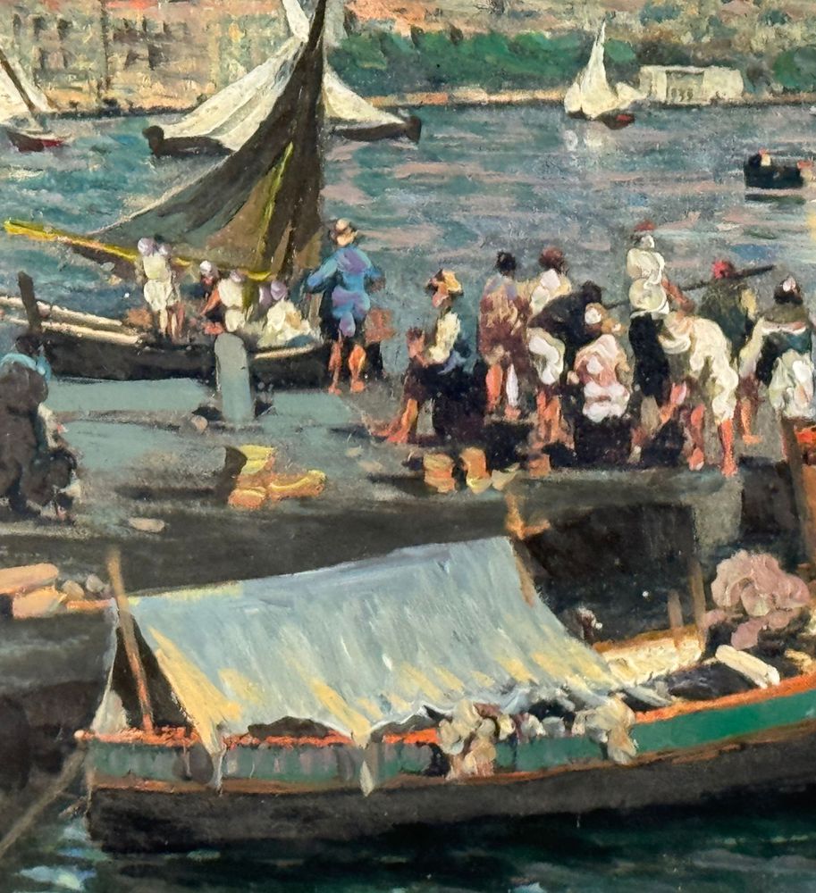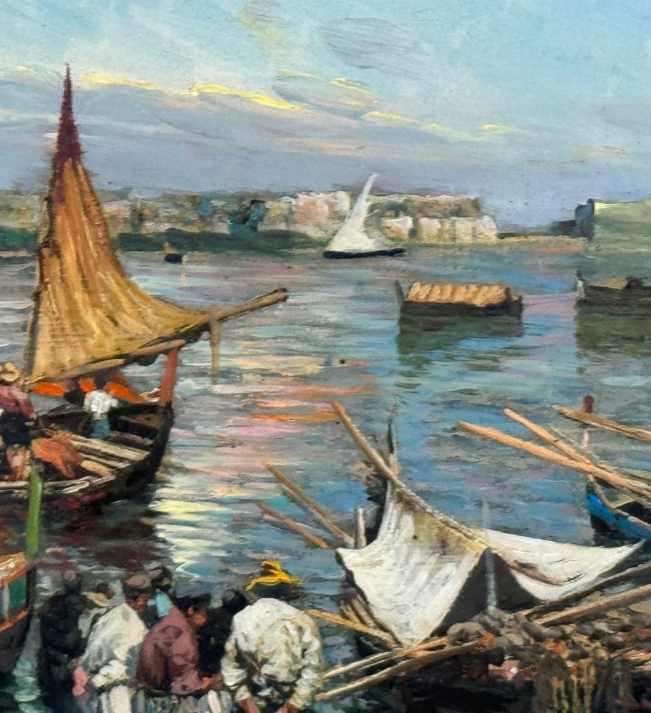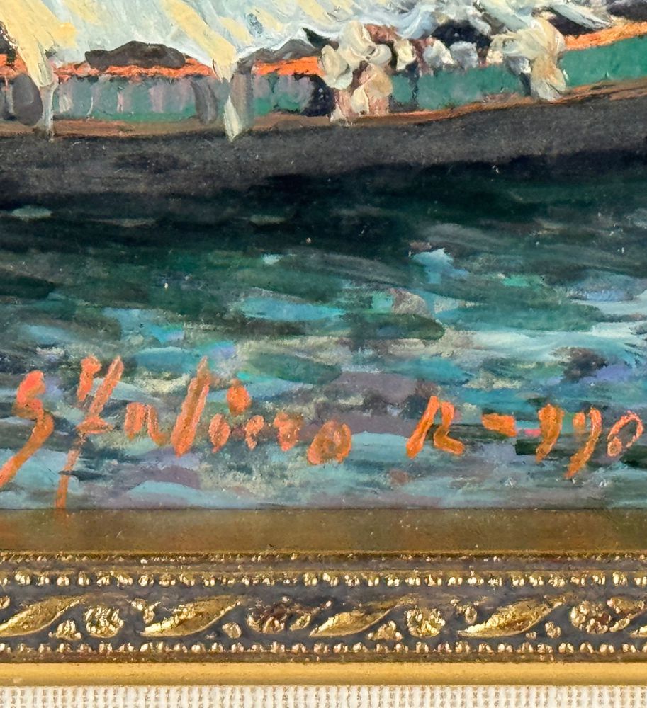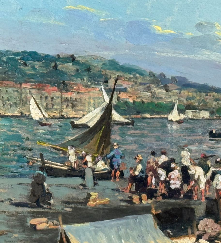 Dipinto olio su pannello, periodo XX secolo scuola Italiana, raffigurante Scorcio di marina con barche e pescatori. Dimensioni compreso cornice: 54x42 cm. Dimensioni interno cornice: 32,5x20 cm. Reca firma in basso a destra da Salvatore Faliero. Opera in buone condizioni.