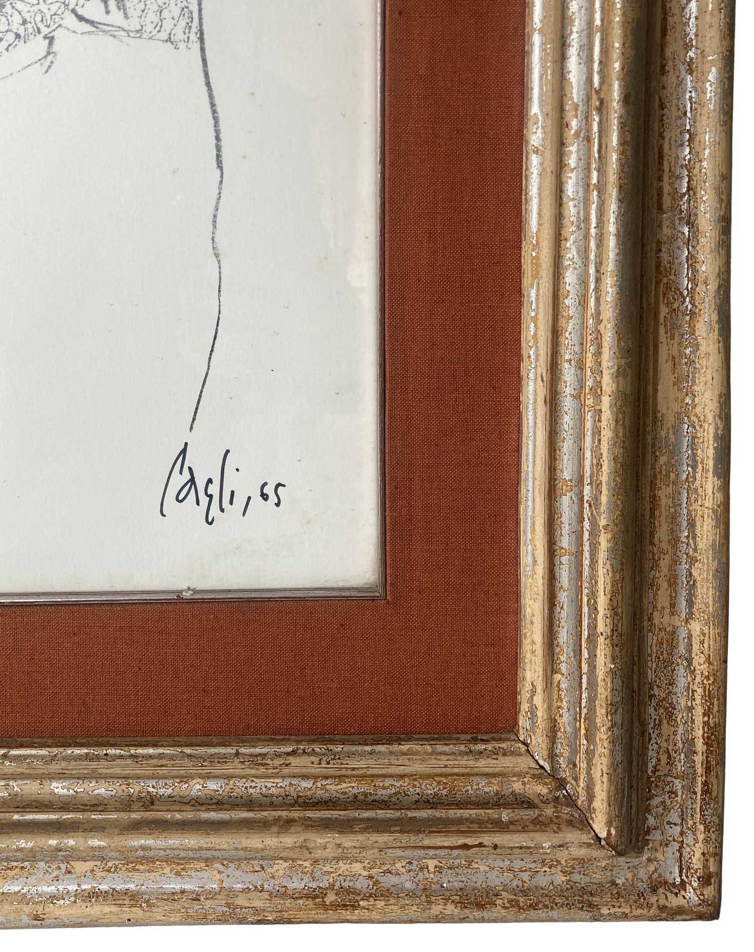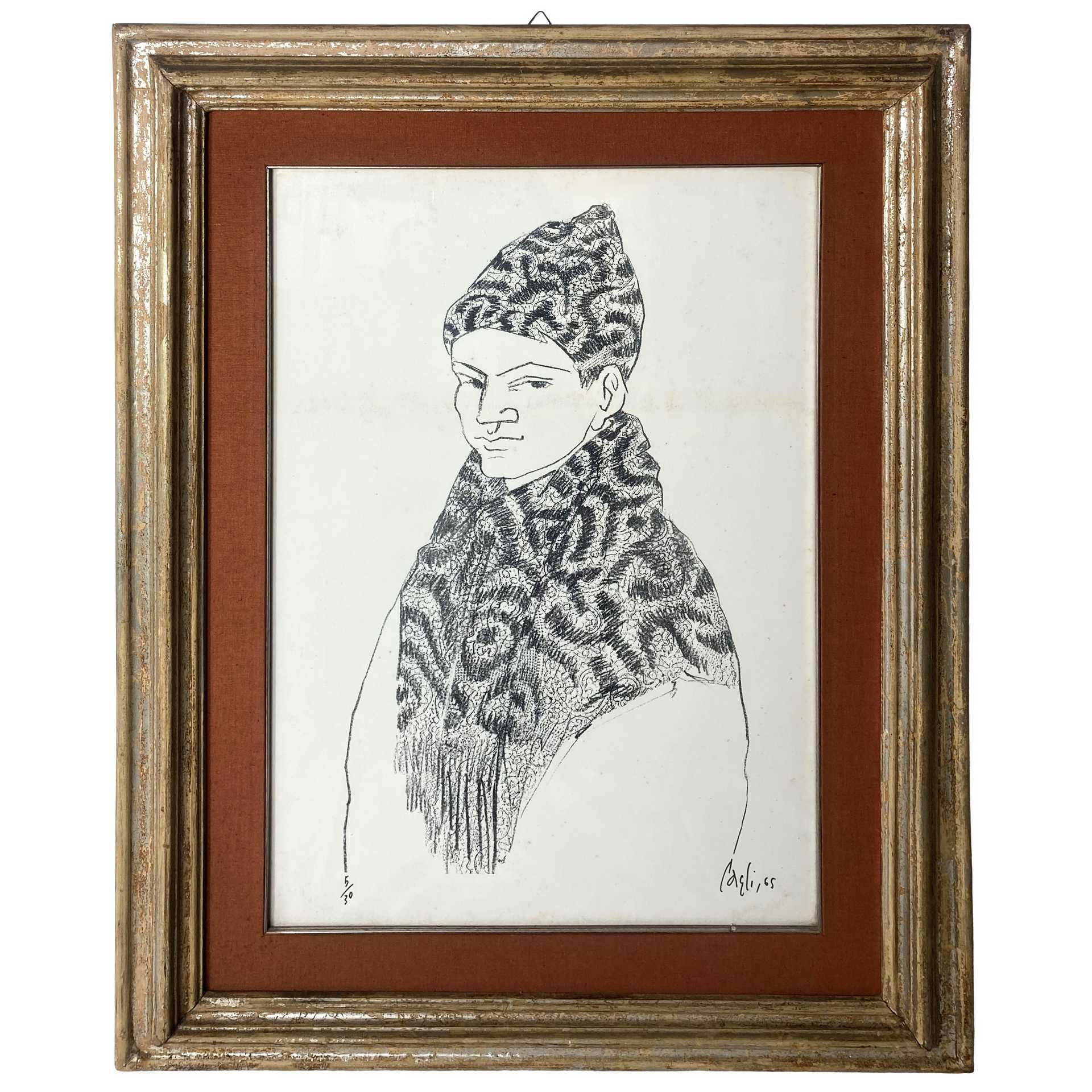 Corrado Cagli (Ancona 1910-Roma 1976) - Uomo con scialle e berretto h cm 70X50 in cornice h cm 95X75 Serigrafia Firmata in basso a destra. Sul retro dedica con firma e data Taormina Agosto 1966. Tiratura 5/30. In bella cornice antica