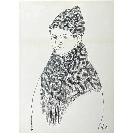 Corrado Cagli (Ancona 1910-Roma 1976) - Uomo con scialle e berretto