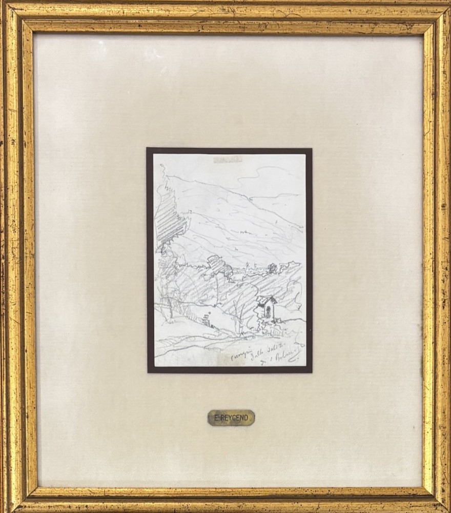 Enrico Reycend Torino 1855 - 1928 La cappelletta Matita su carta cm 14x10 firmato in basso a dx