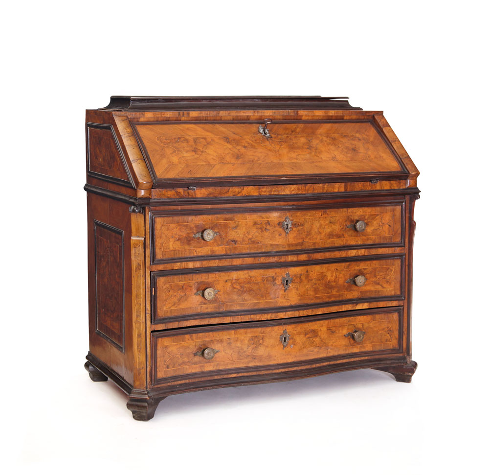 MOBILE DEL XVIII SECOLO CASSETTONE A RIBALTA LASTRONATA AD INTARSI IN LEGNI...