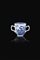 Tazzina in porcellana bianca e blu con manici decorata con paesaggio, Cina, dinastia Qing, XVIII-XIX Sec.